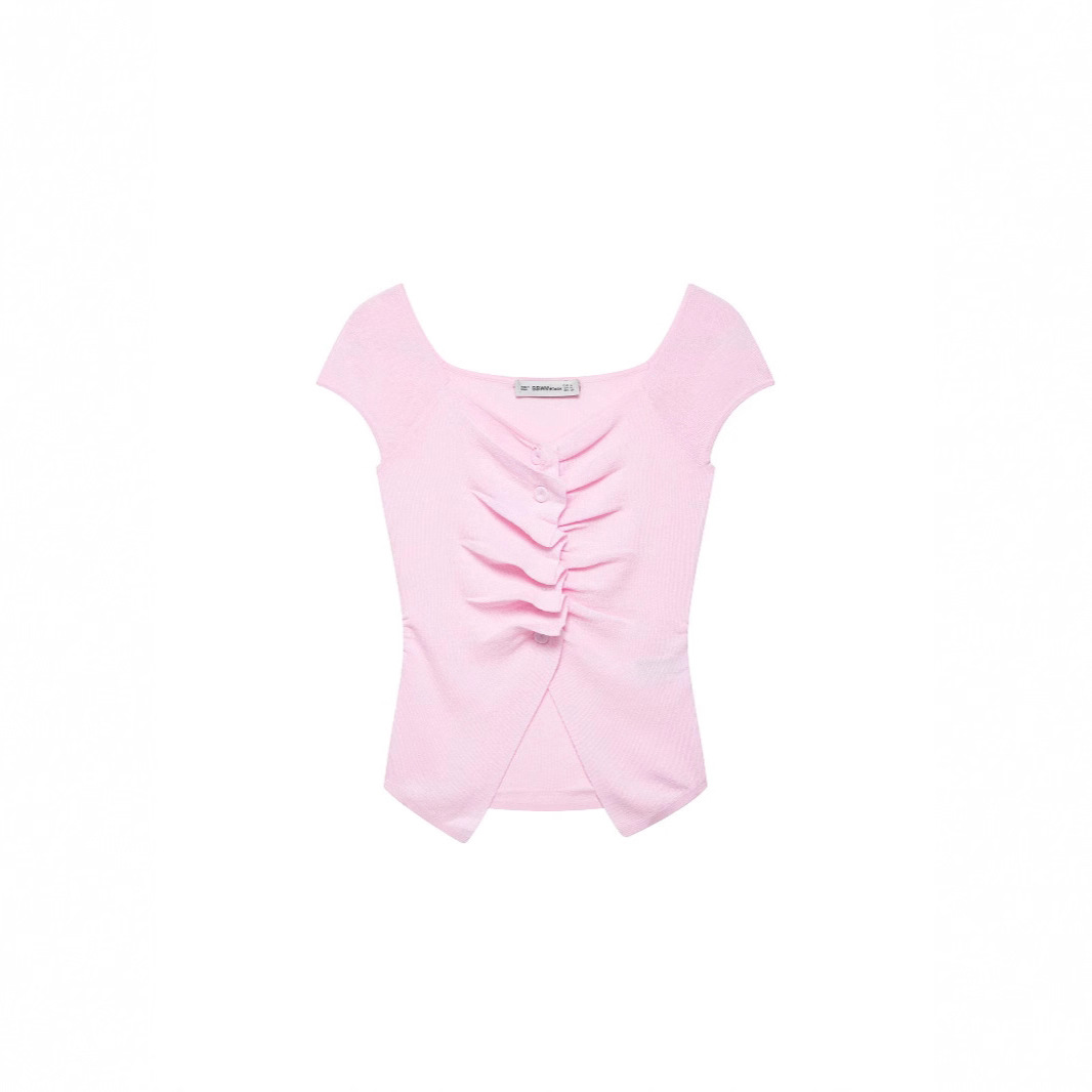 跨境外贸女装2025夏季新款欧美风格百搭休闲时尚褶皱装饰针织上衣