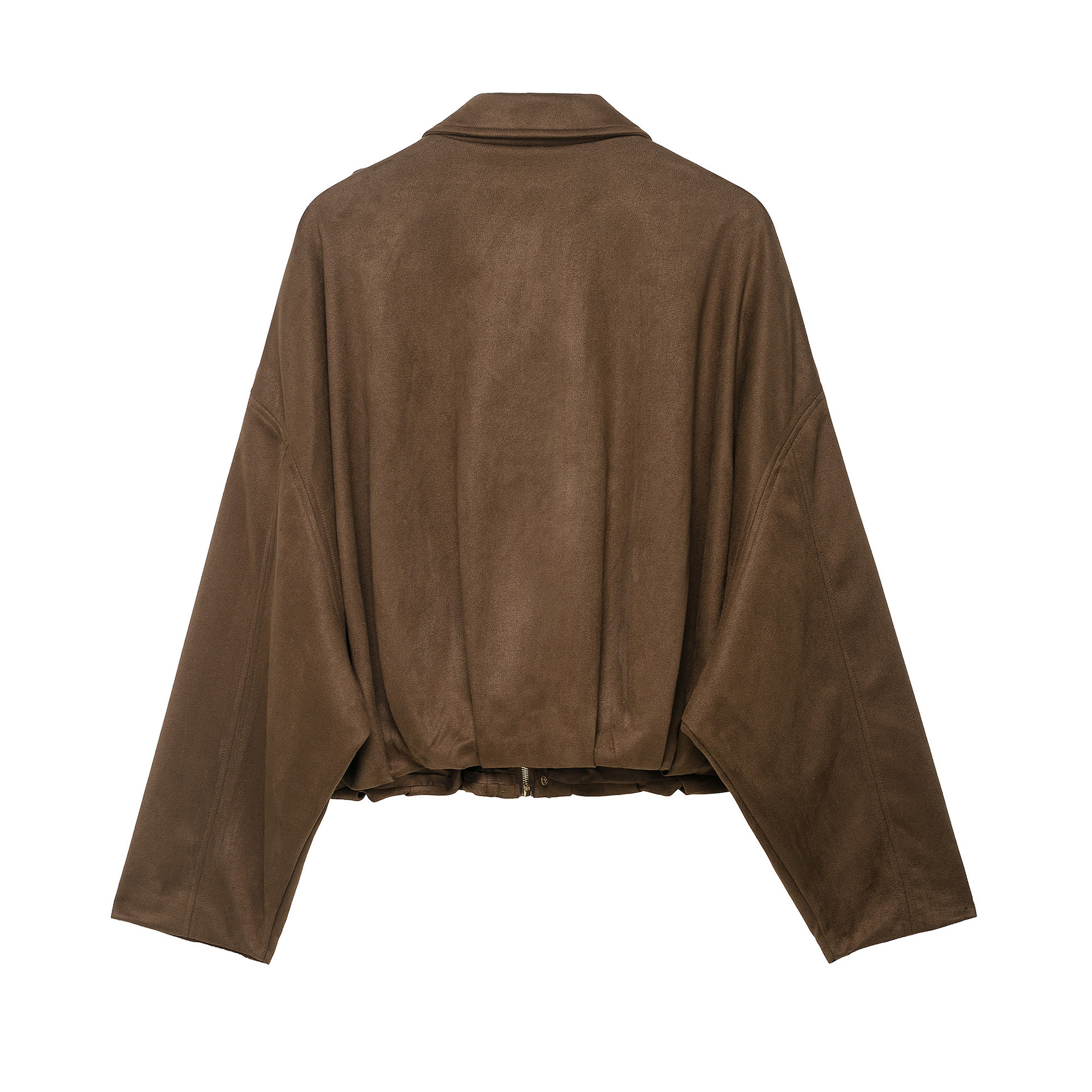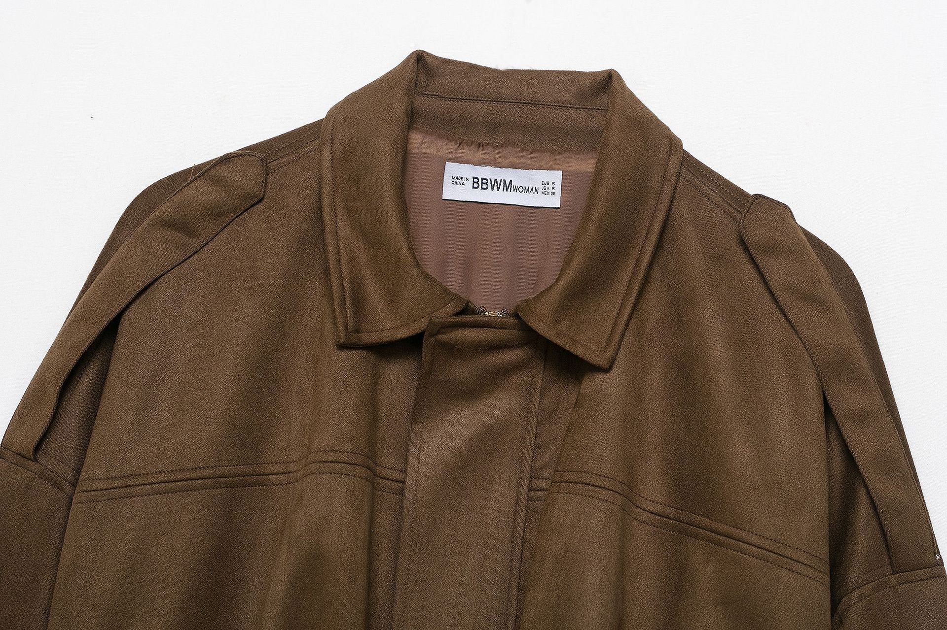 亚马逊欧美女装2025春秋麂皮绒面质感翻领拉链纽扣飞行员夹克外套