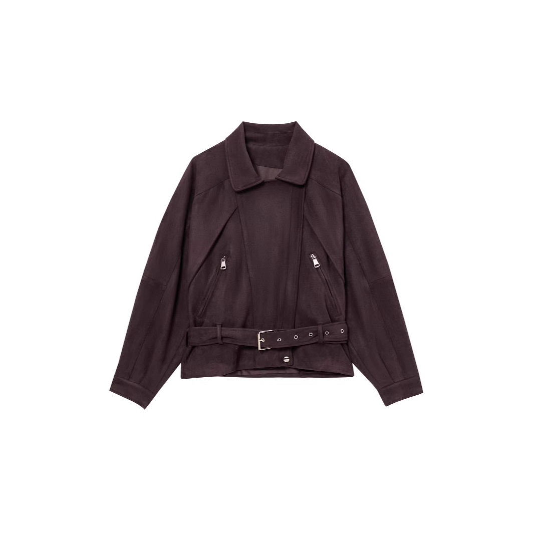 跨境外贸女装2025春季新款欧美风格百搭休闲时尚麂皮绒机车风夹克