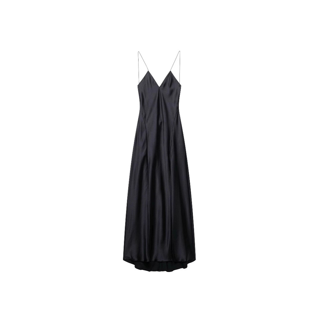 2025年夏新作 クロスボーダー貿易向け レディース カジュアルファッション 多彩に使える 無地 サテン風 ロングワンピース