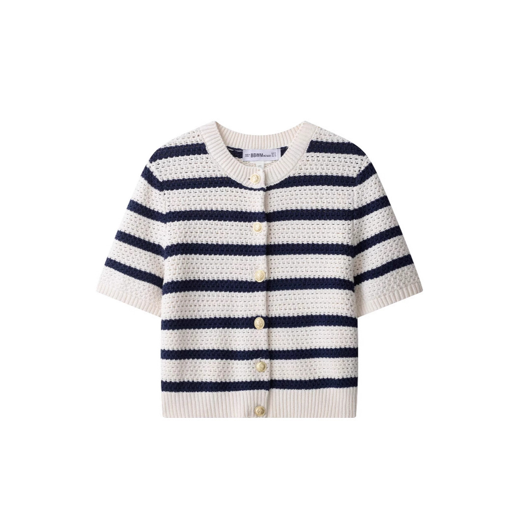 2025年春新作 欧米風ファッション 多彩な着こなし カジュアルで上品なストライプニットカーディガン (越境貿易婦人服)
