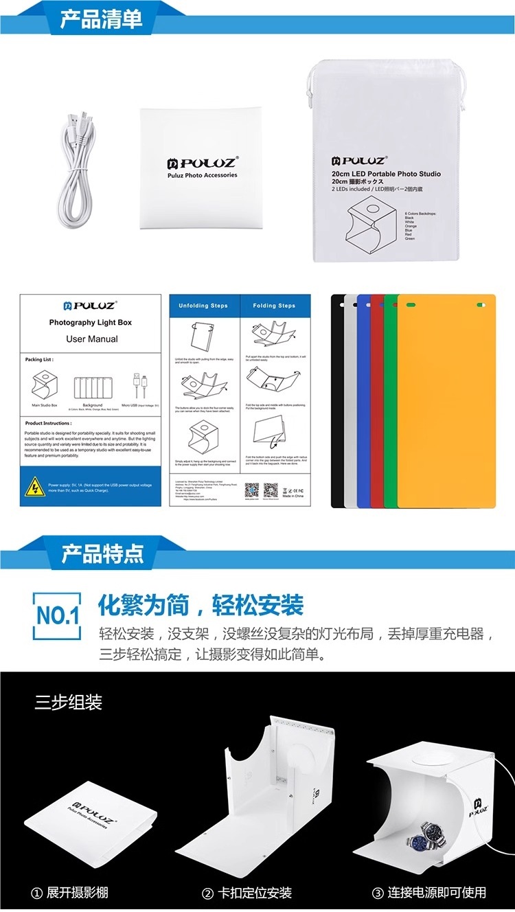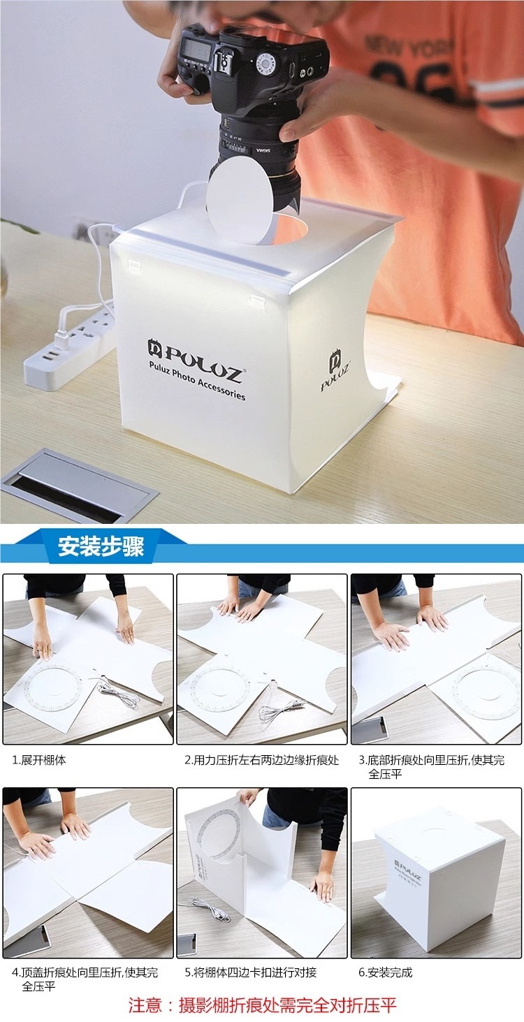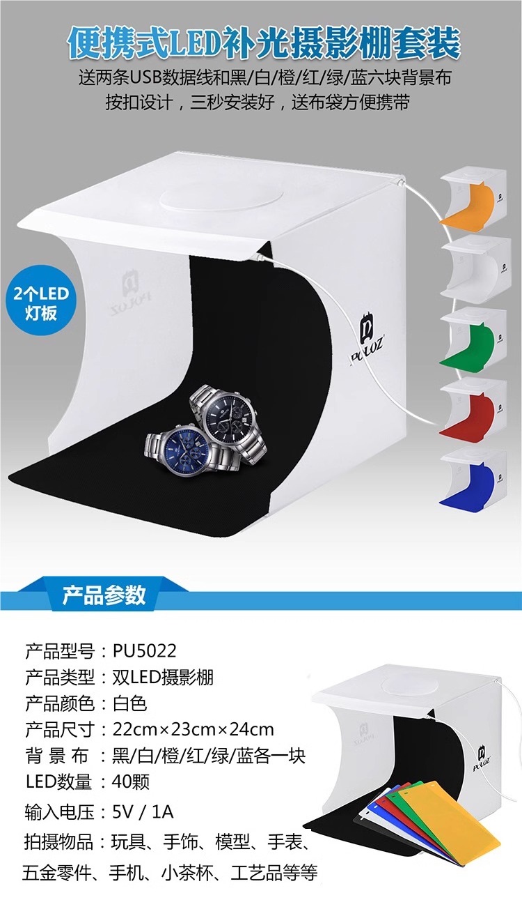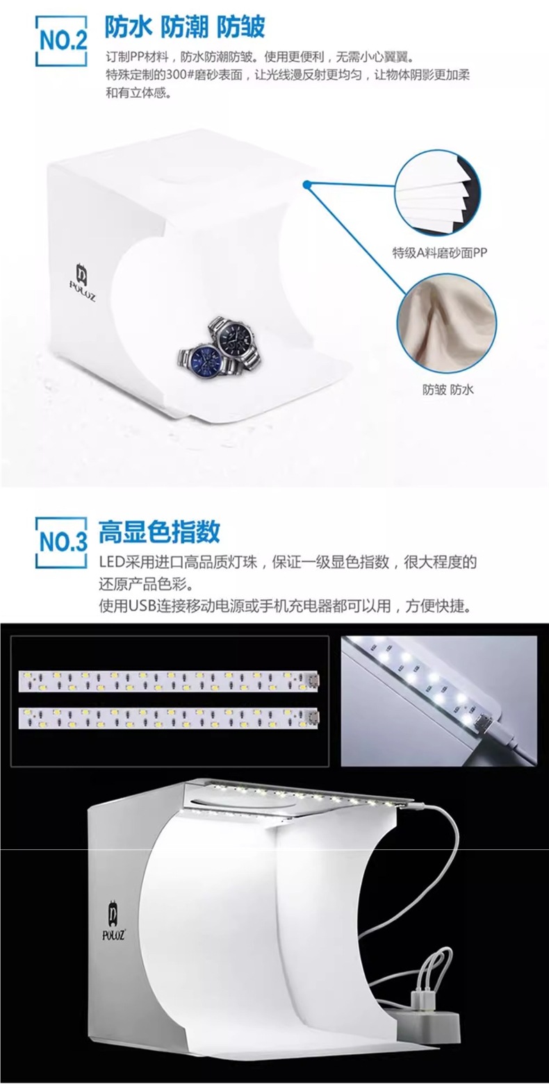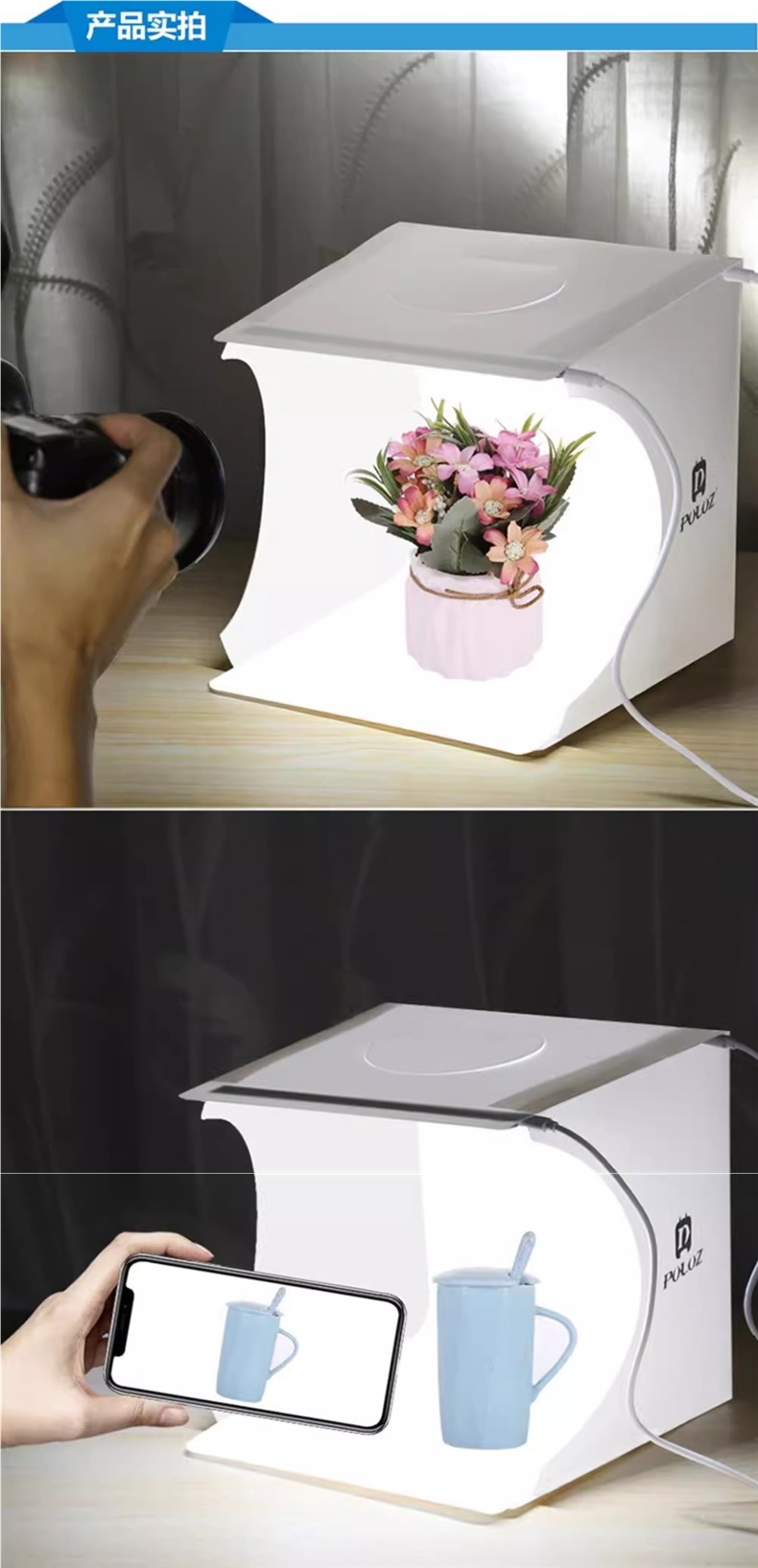23cm迷你摄影棚小型拍摄台灯箱柔光箱补光灯珠宝产品白底图拍照盒