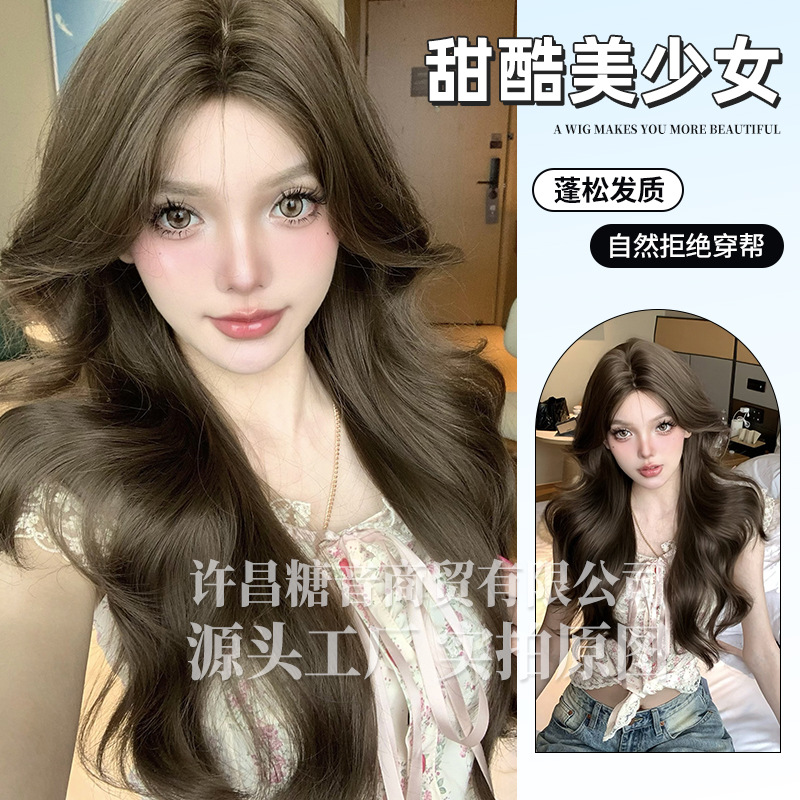 砂糖の音のかつらの女性の日常のネットの赤い長巻きの髪の夏の新型の自然で甘い全体のカバー式
