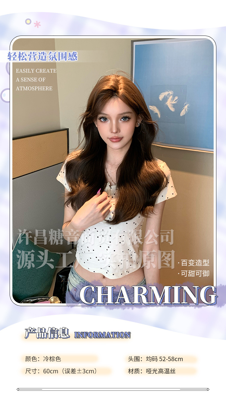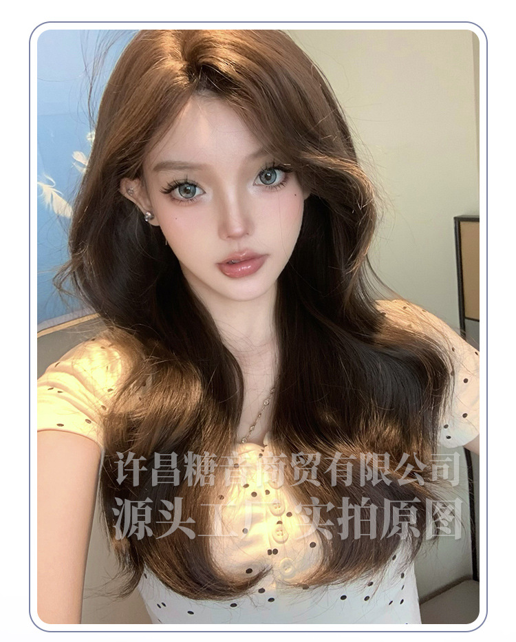 糖音假发黑茶色层次感碎剪成熟气质长卷发整顶假发全头套