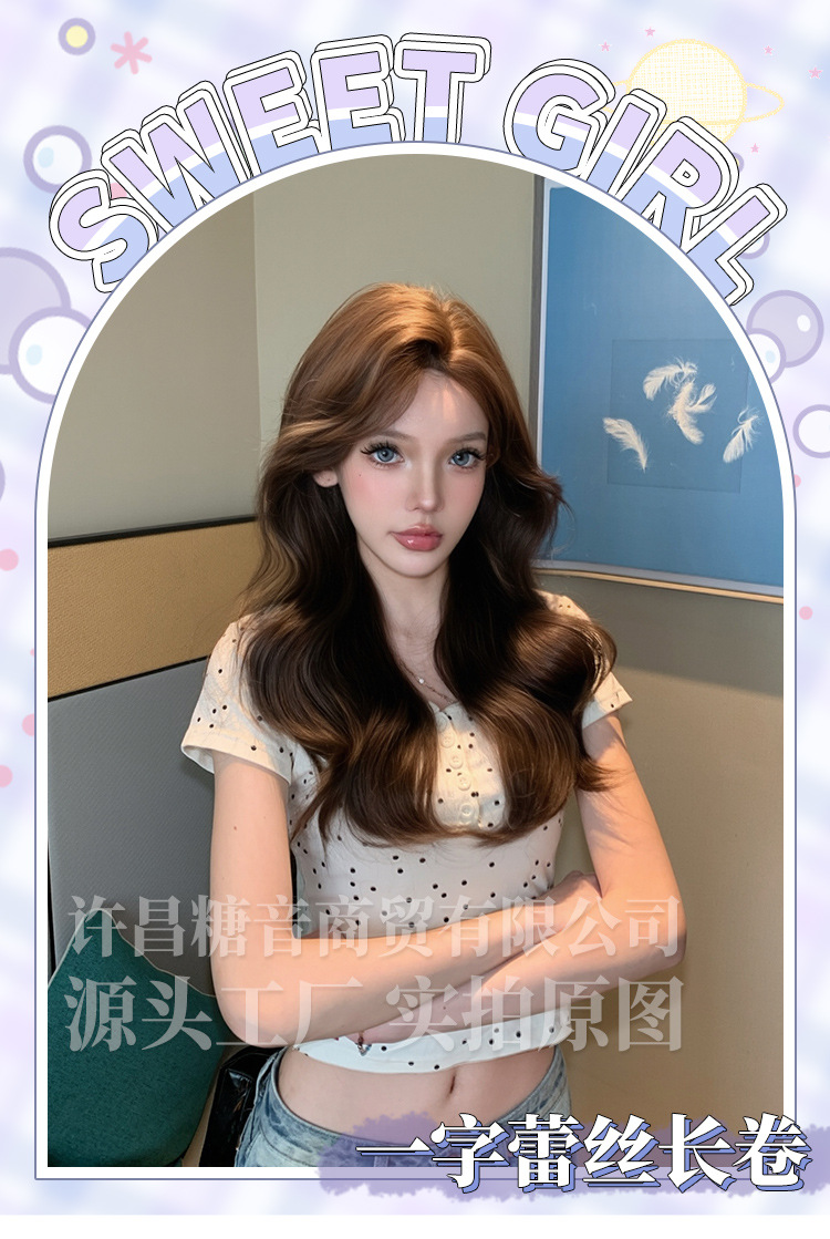 糖音假发女日常网红长卷发夏季新款自然逼真一字蕾丝全头套假发