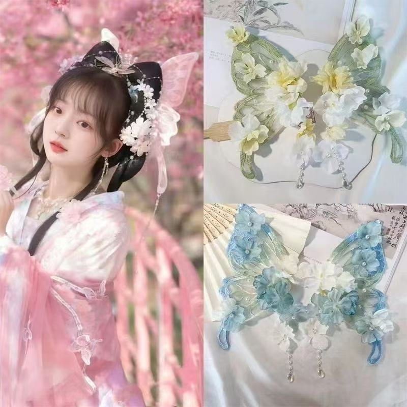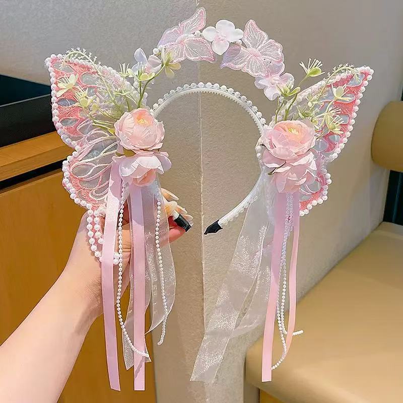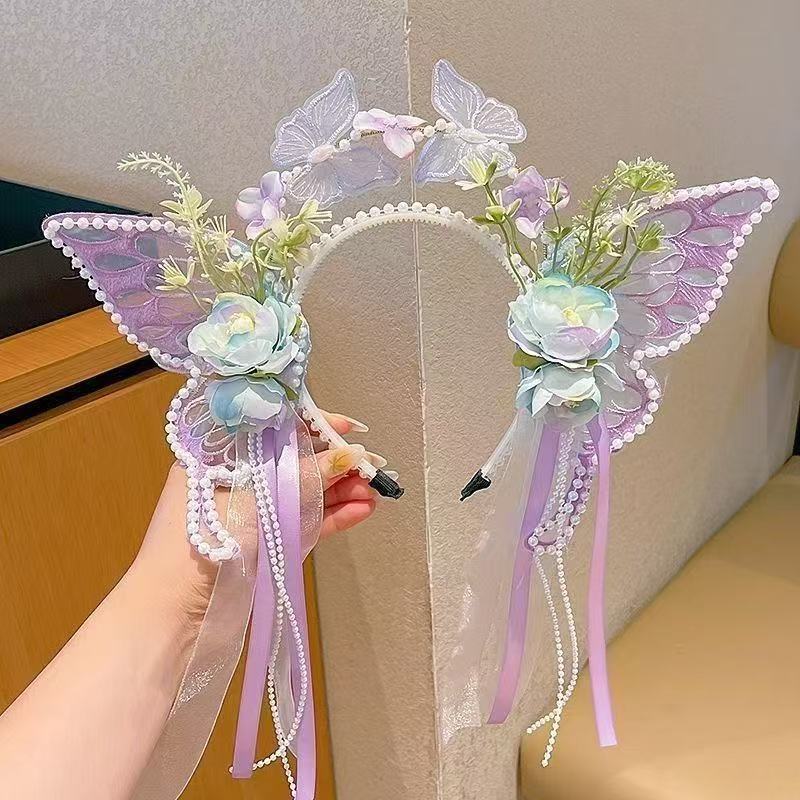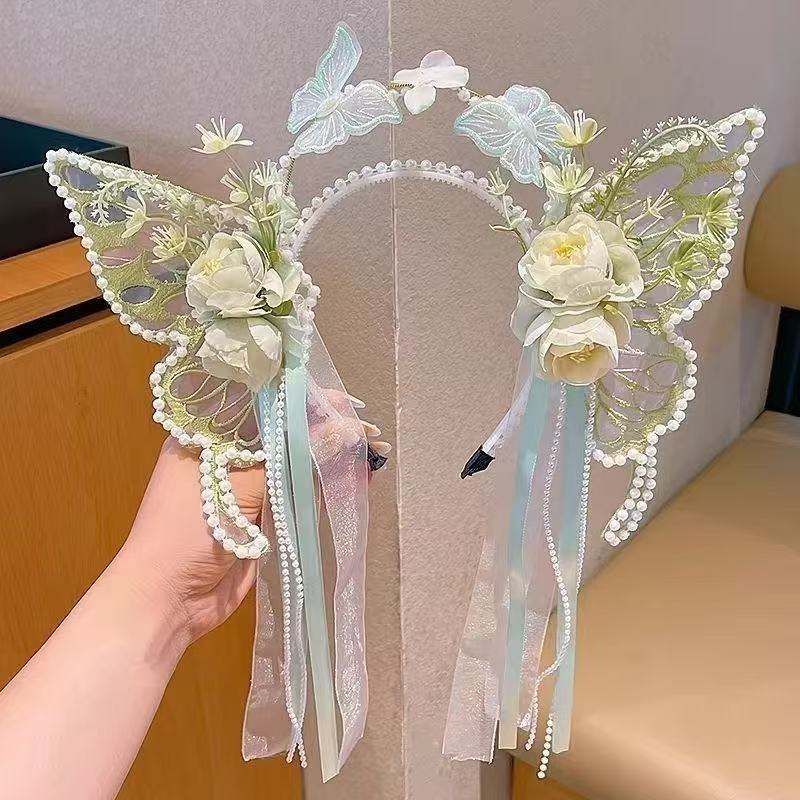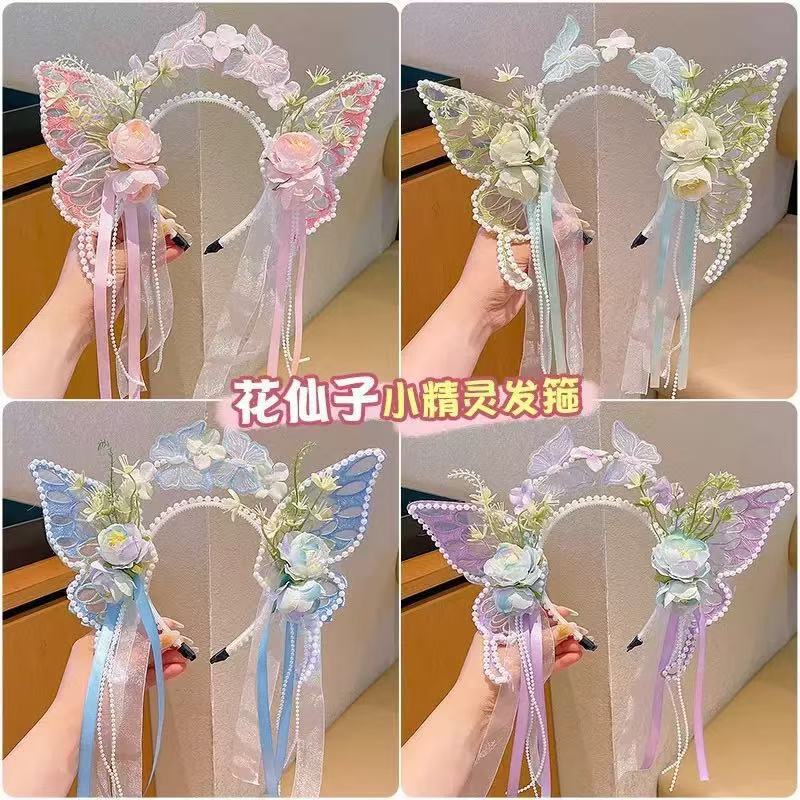 新款蝴蝶发箍仙气公主流苏发饰女童头箍配饰头饰花仙子头饰