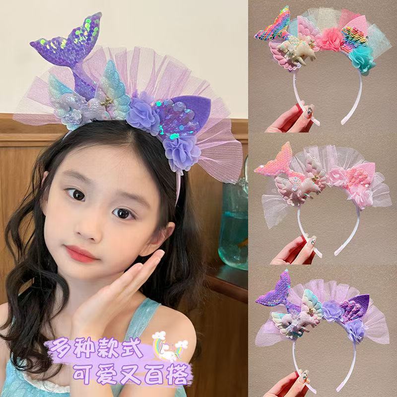 子供の発光の網の糸のカチューシャの女の子の艾莎の王女の頭飾りの女の子の超仙の髪飾りの赤ちゃんのカチューシャの写真を撮るカチューシャ