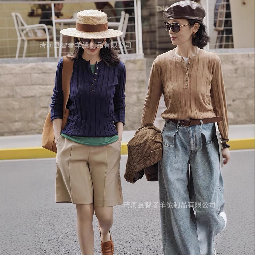 高级老钱风精纺羊毛针织衫女修身正肩上衣25新款v领修身内搭打底