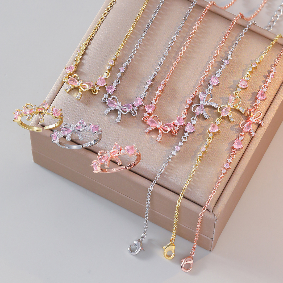 项链女新款甜美潮流蝴蝶结手链简约锆石小众手链跨境爱心设计饰品