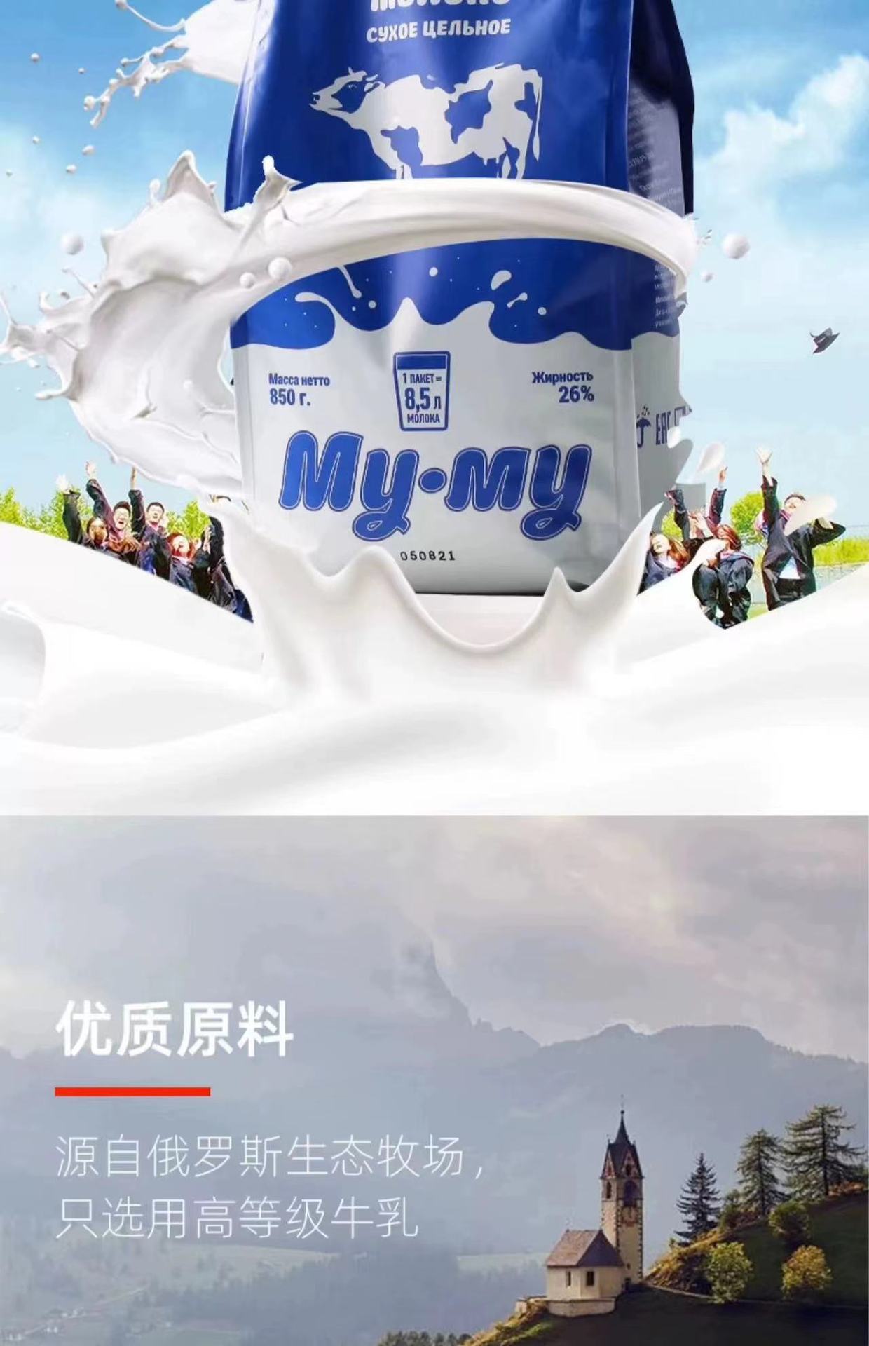俄罗斯奶粉进口高钙无蔗糖速溶中老年全脂蓝牛奶粉850克袋装批发