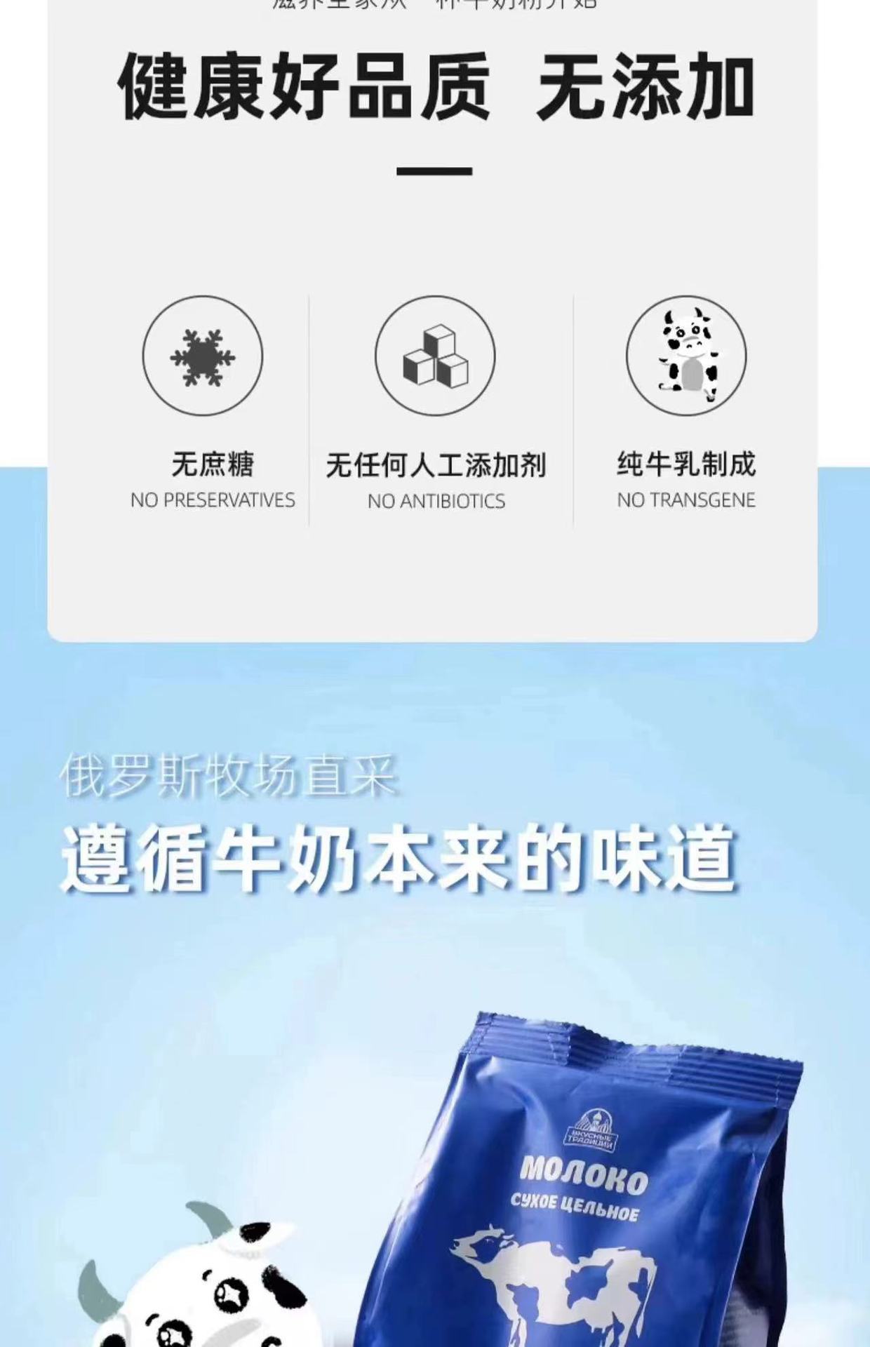 ロシア産粉ミルク、オリジナル輸入原料使用、昔ながらの全脂粉乳、500g/袋、中高年向け高カルシウム牛乳