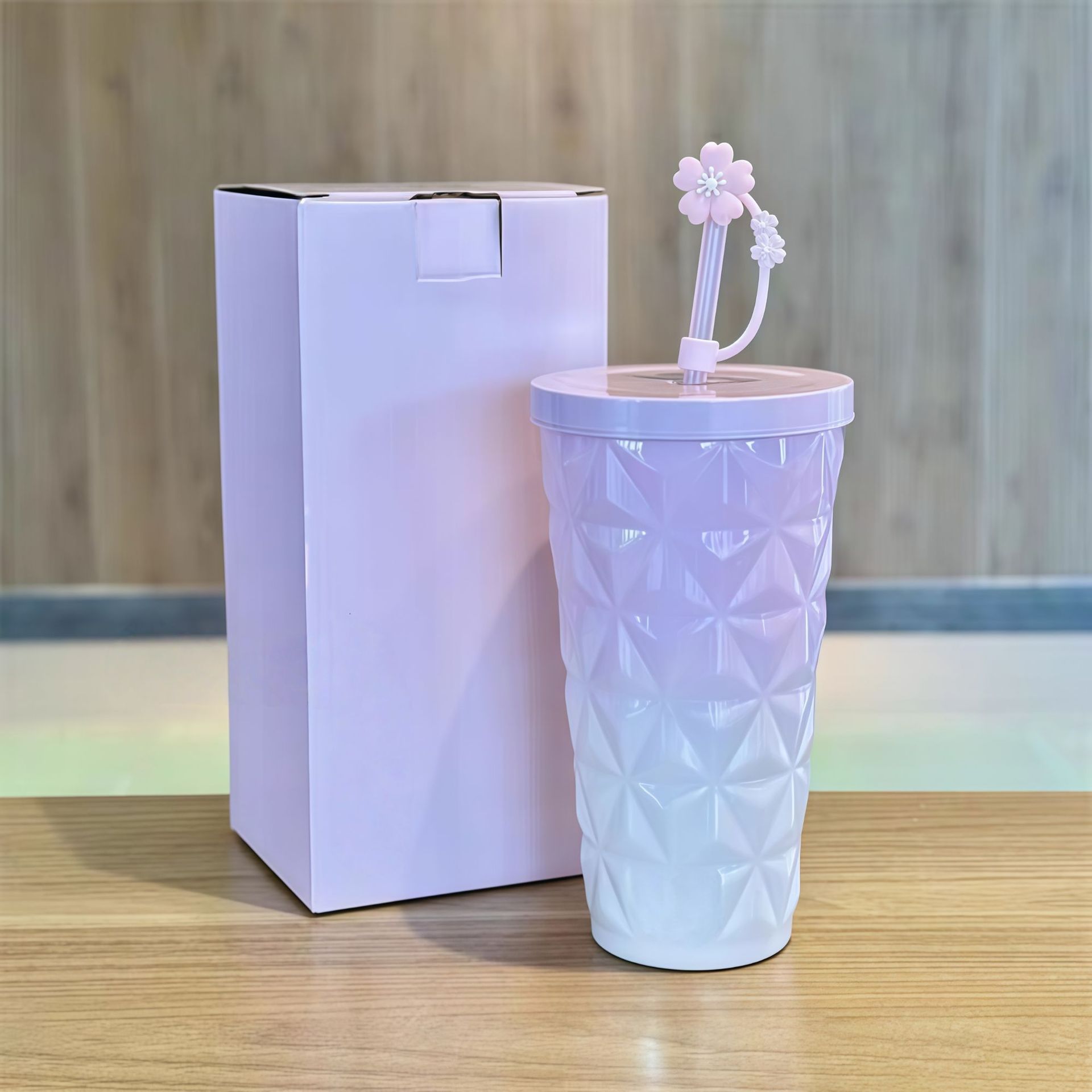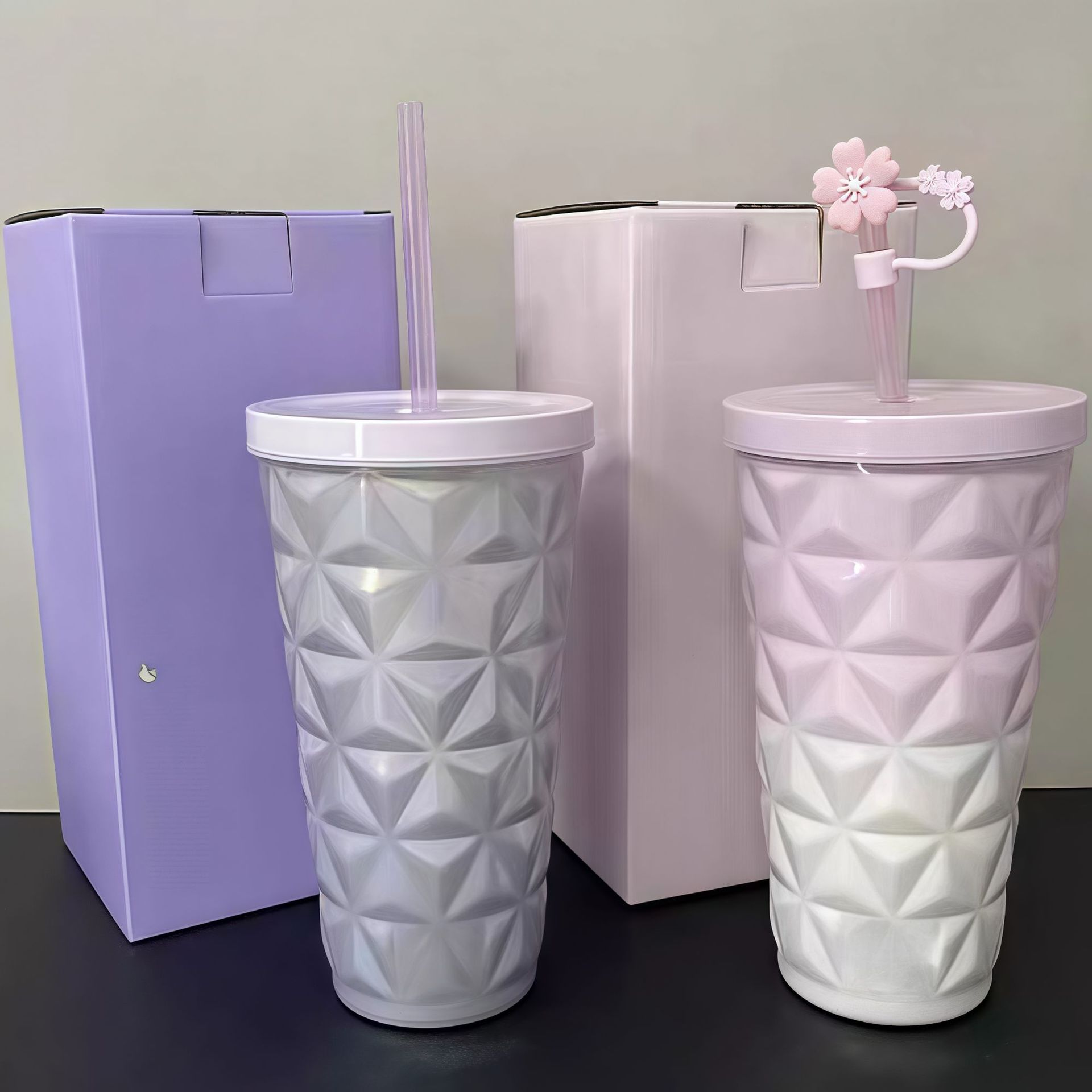 国境を越えた新しい二重プラスチックストローカップが爆発した星巴創意大容量のタイas携帯ドリアンカップ花火カップ