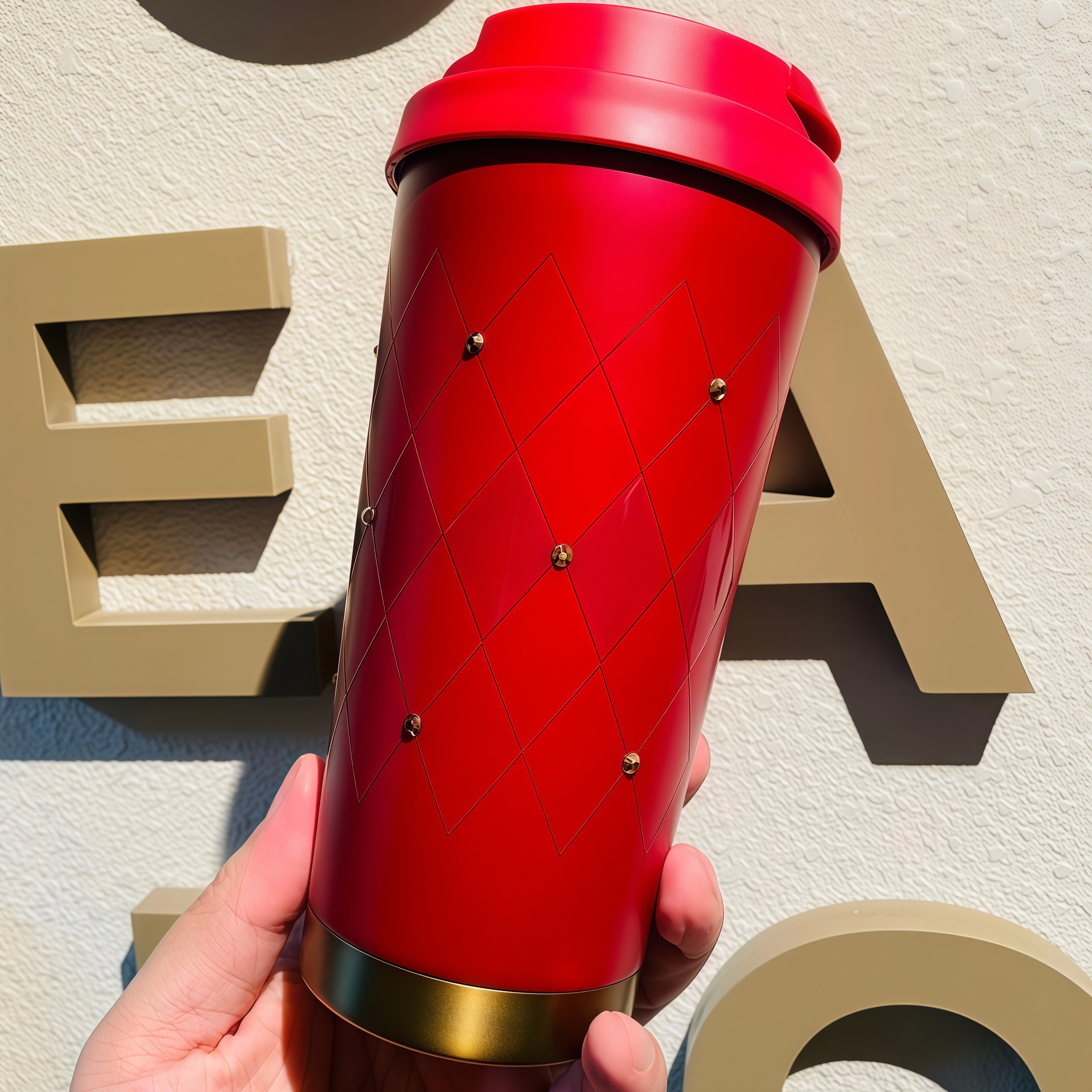 現物星父の新型菱格紋ステンレスストローカップ大容量カップ高颜値保温保冷カップバッチ