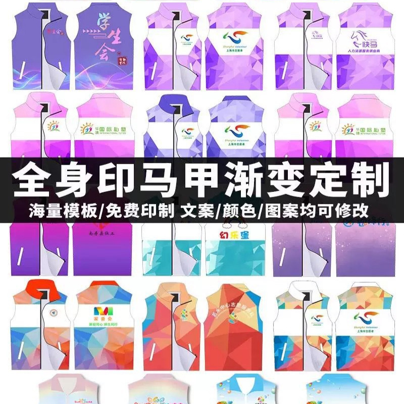 全身プリント広告ベストカスタマイズされたボランティアボランティアグラデーションカラーベストスーパーマーケット作業服卸売プリントロゴ