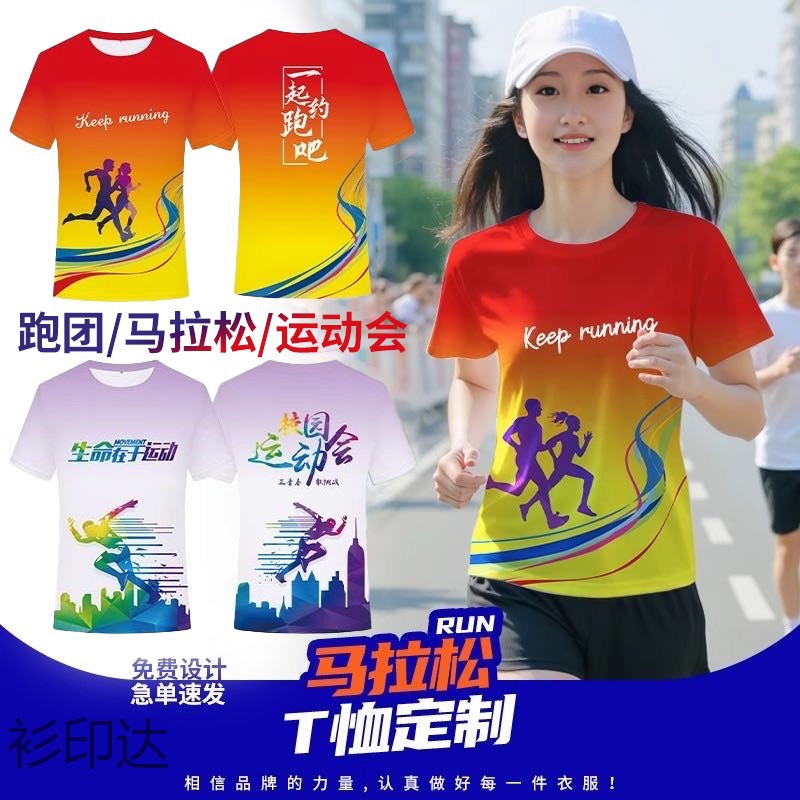 マラソンランニングトップス速乾性Tシャツカスタム作業服半袖プリントロゴプリントグループ服ランニンググループ服DIY