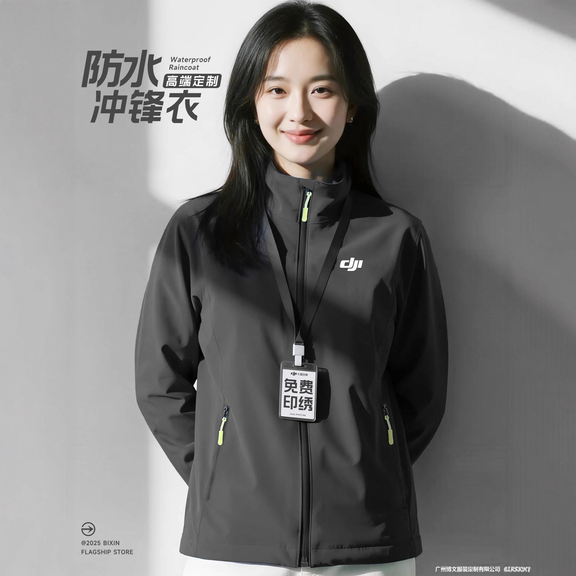 三层复合高端风衣外套工作服定制印logo立领夹克薄款冲锋衣刺绣