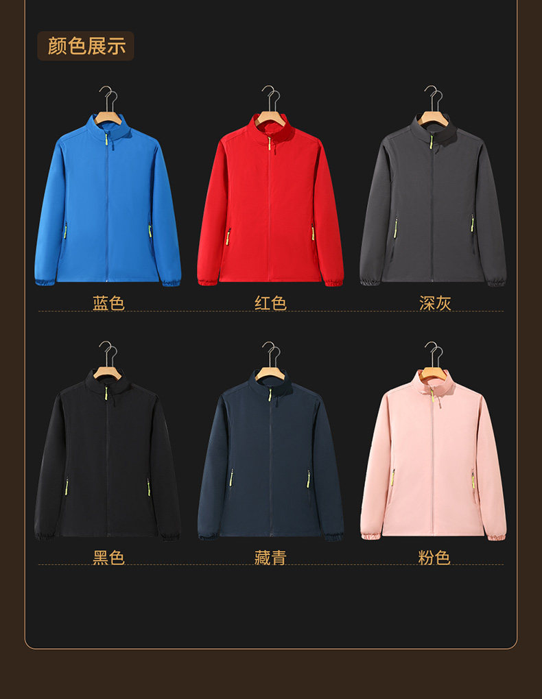 秋冬薄手スタンドカラージャケット、カスタムスポーツ登山服、シングルレイヤーウインドブレーカー、作業服、ロゴ印刷