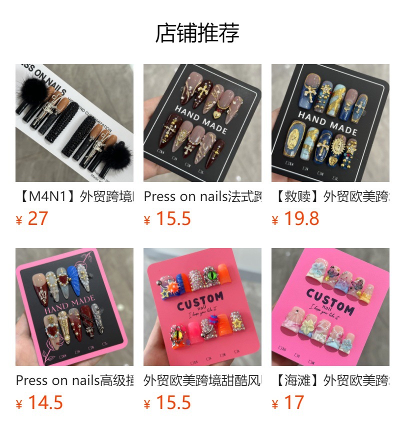 【海滩】外贸欧美跨境鸭嘴甲立体雕花纯手工穿戴甲Press on nails
