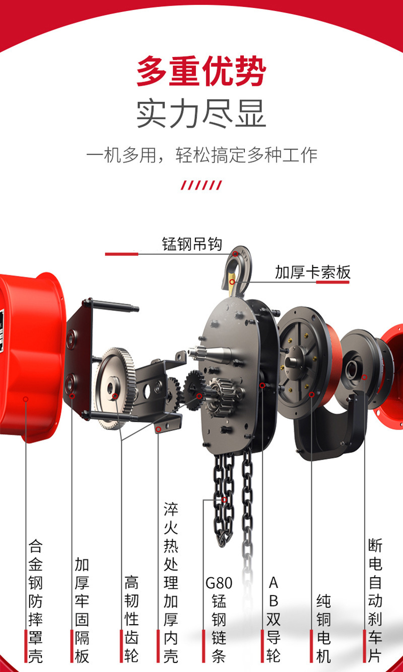 380V小型吊机DHS快速环链电动葫芦220v起重提升机1t5t20t挂钩
