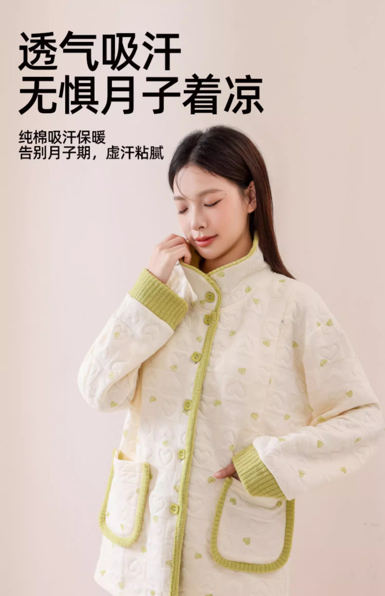 婧麒月子服秋冬产后三件套空气棉哺乳睡衣孕妇怀孕期待产妇家居服