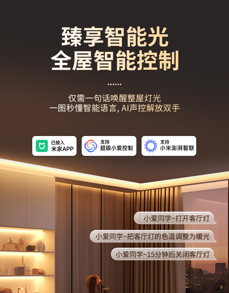 已接入米家APP智能灯带COB线条灯自粘家用吊顶无主灯调光线型灯