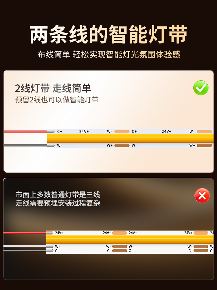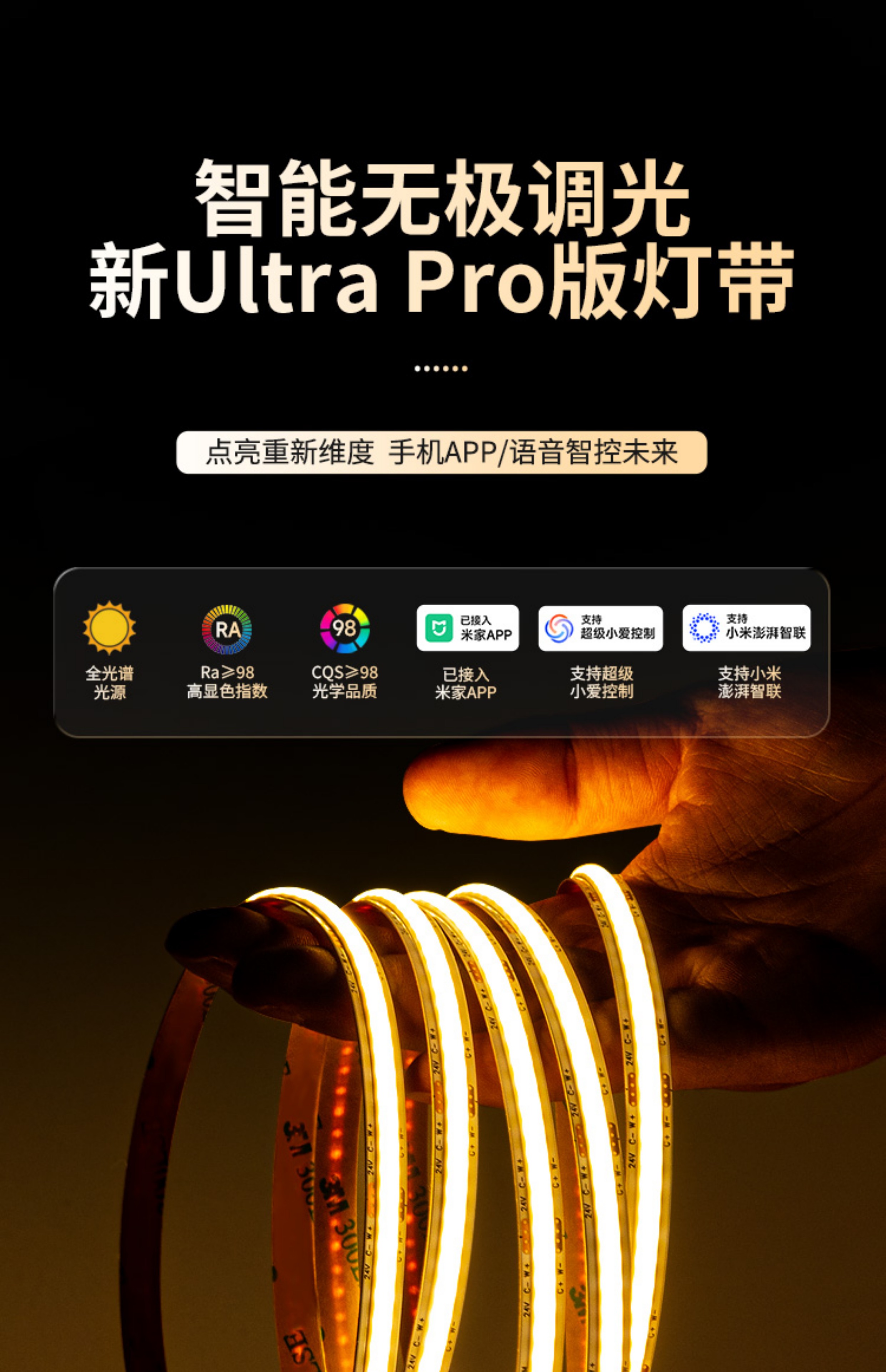 已接入米家APP智能cob灯带无极调光调色小爱24V低压三色线形灯带