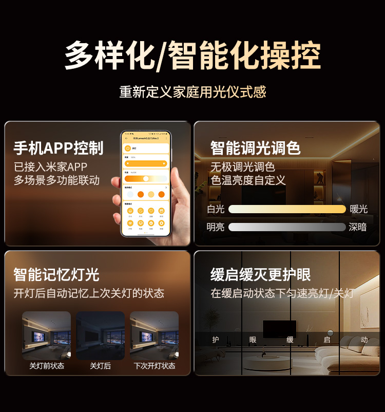 已接入米家APP智能cob灯带双色温语音无极调光客厅双眼皮线形灯顶