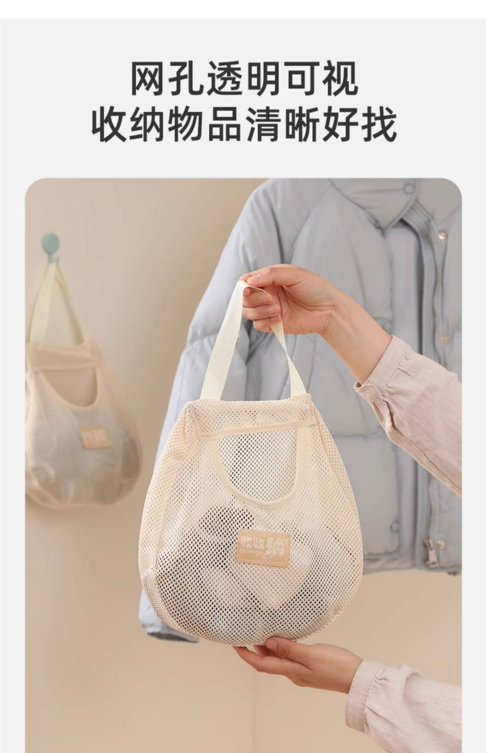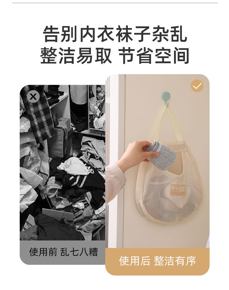 家用透气收纳挂袋内衣袜子挂衣柜悬挂式收纳网兜门后杂物收纳神器