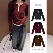 細くて細いねじの新型の底のシャツの中で百合の上着の大きいサイズの秋冬の長袖を掛けてやせている立襟の2セットを現します。