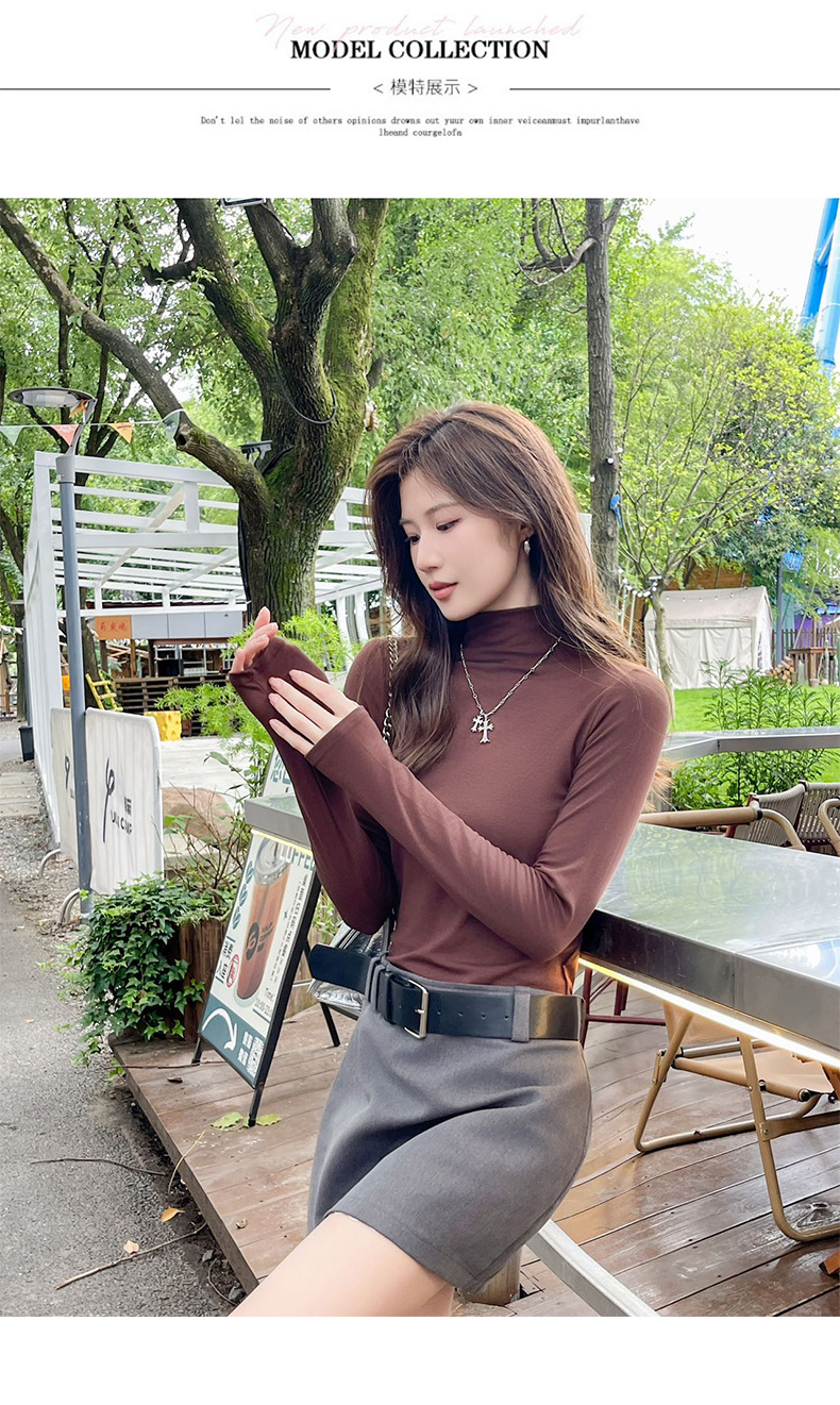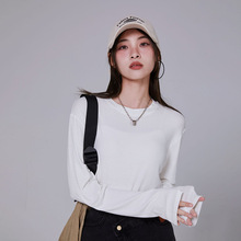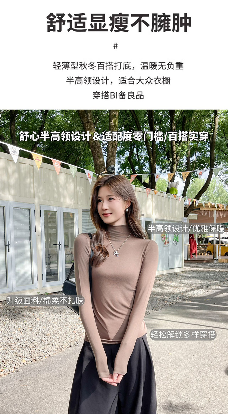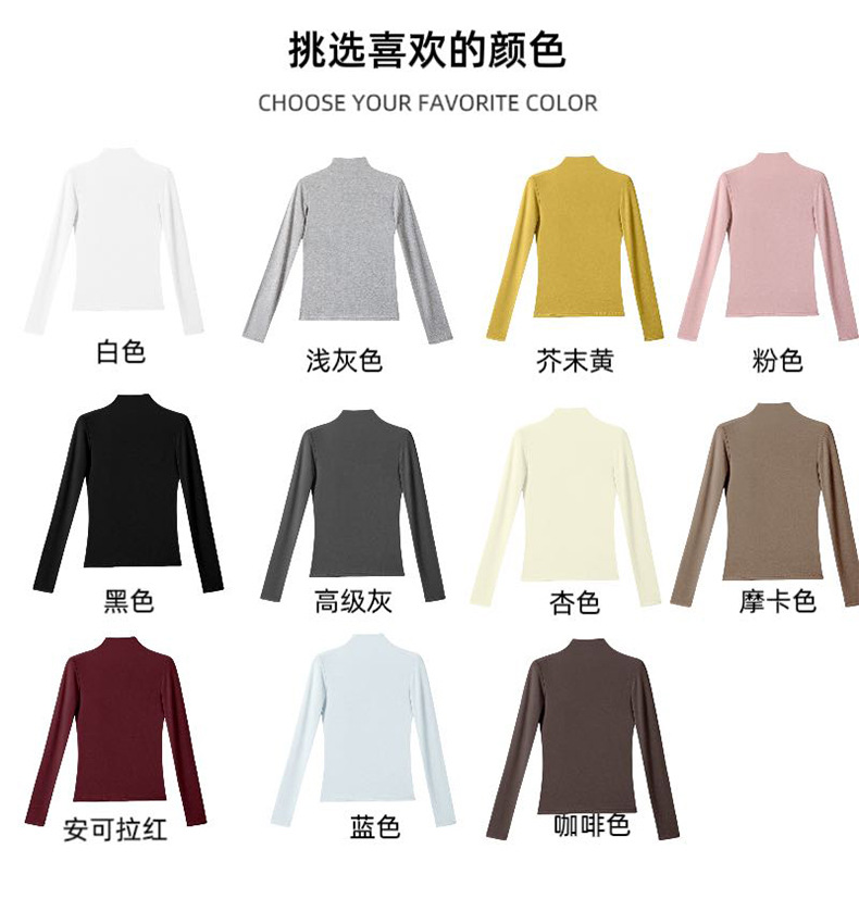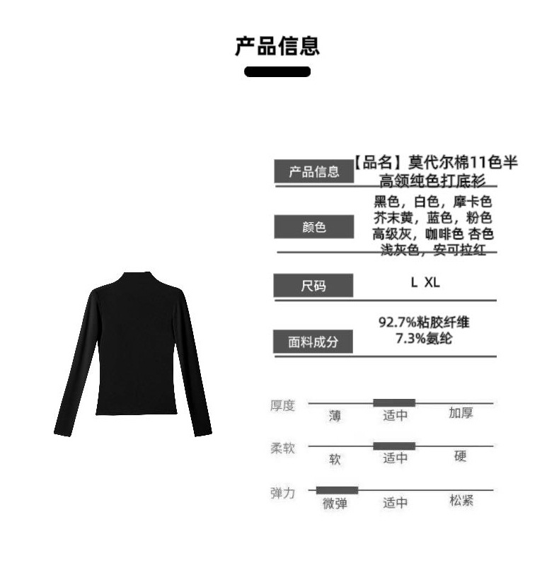 软糯莫代尔半高中领薄款打底衫女内搭春秋冬款长袖黑白色面膜t恤