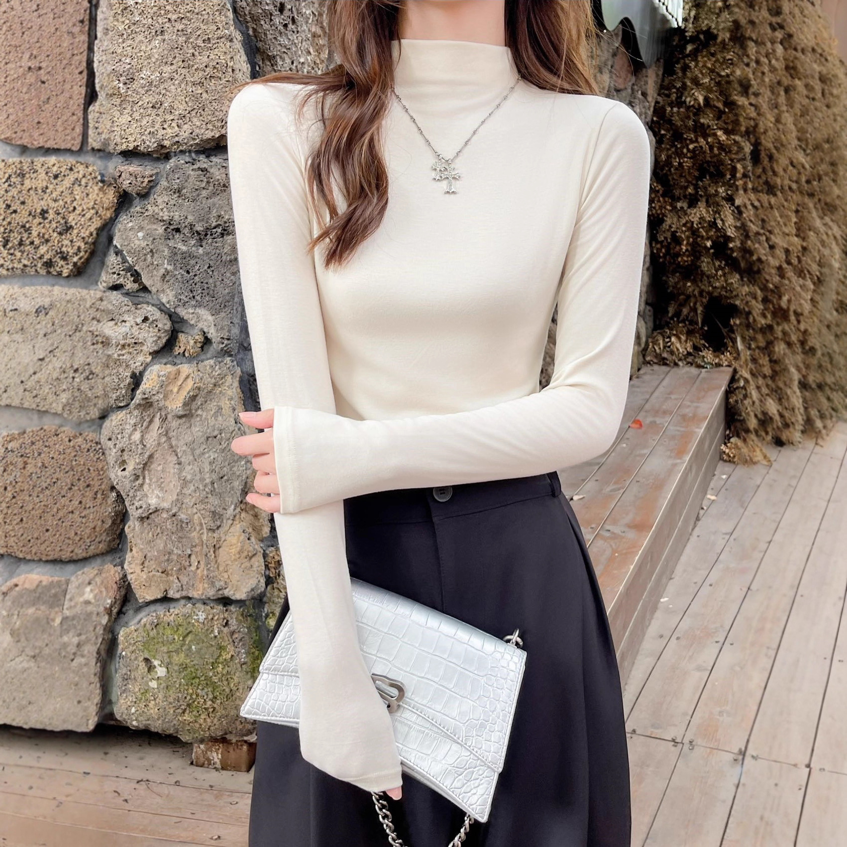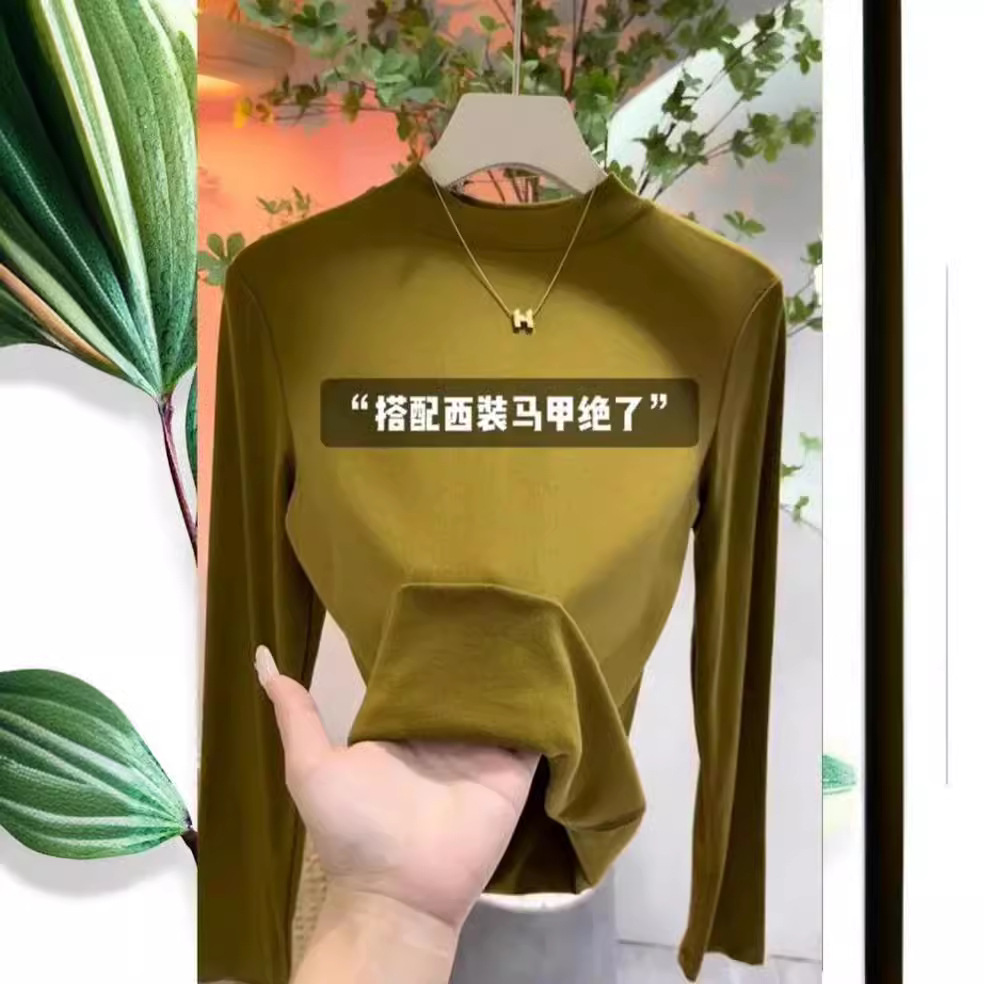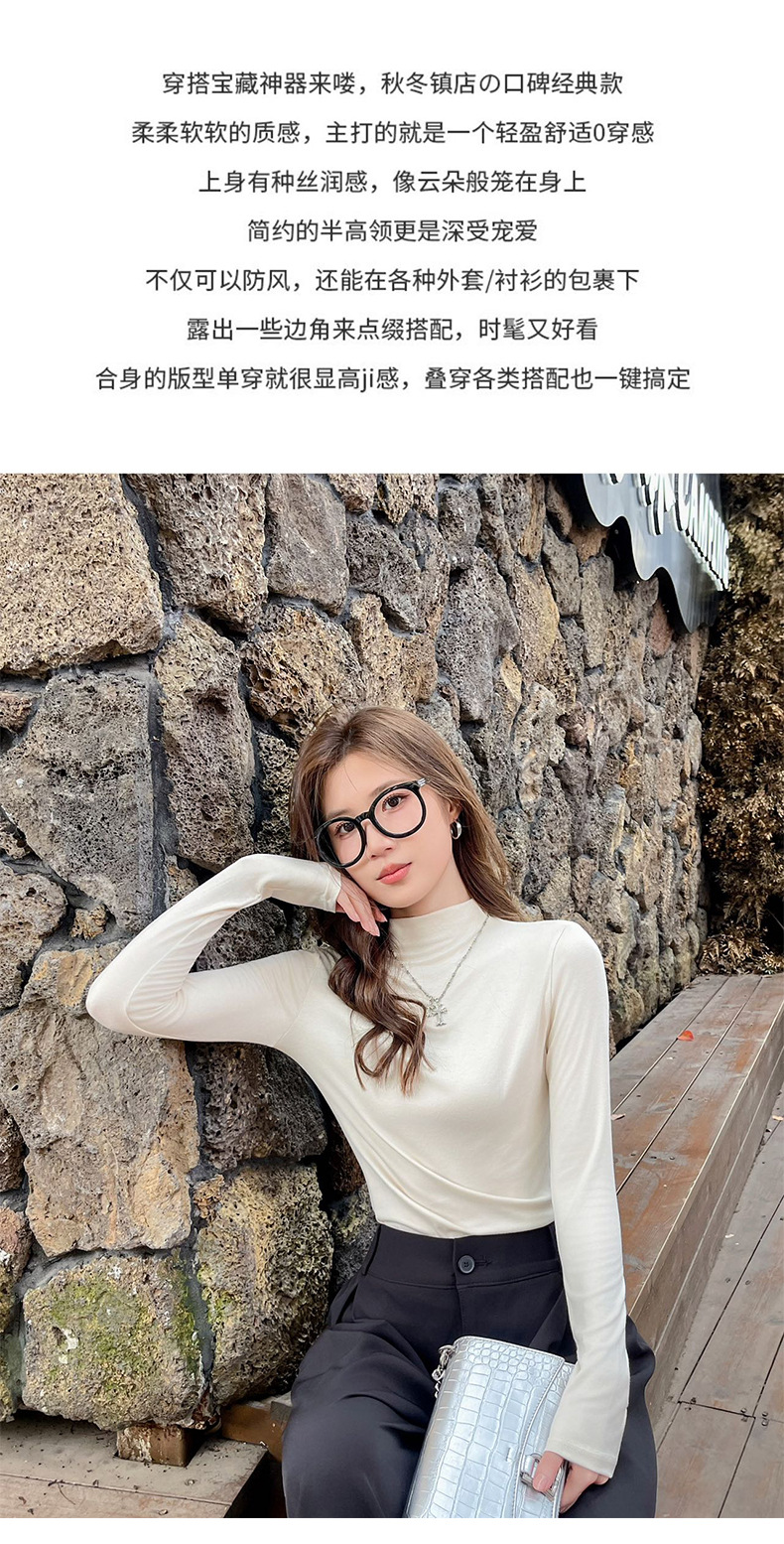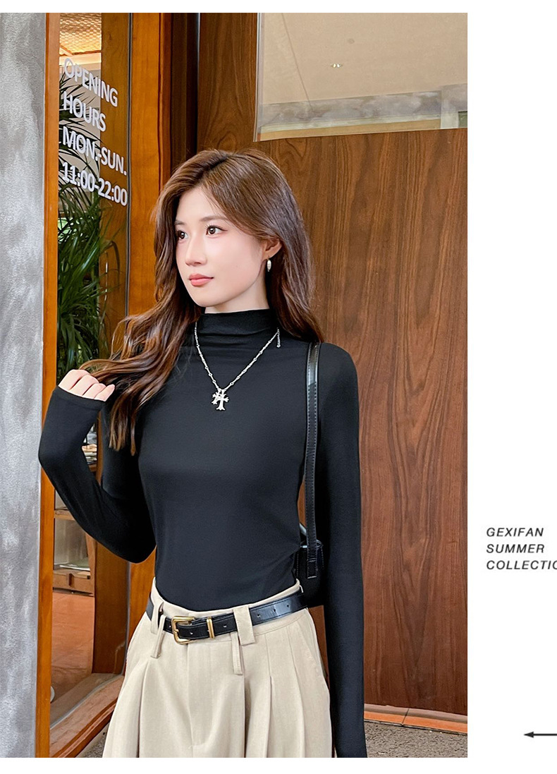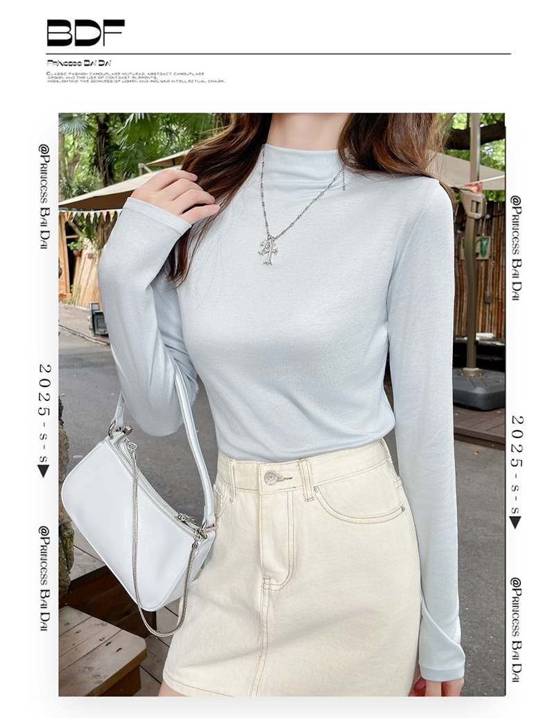 莫代尔半高领打底衫女秋2025新款高级感纯色内搭显瘦长袖t恤上衣