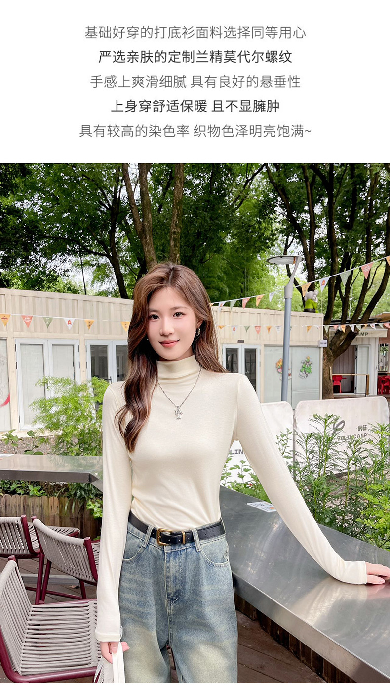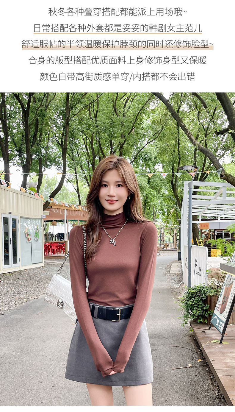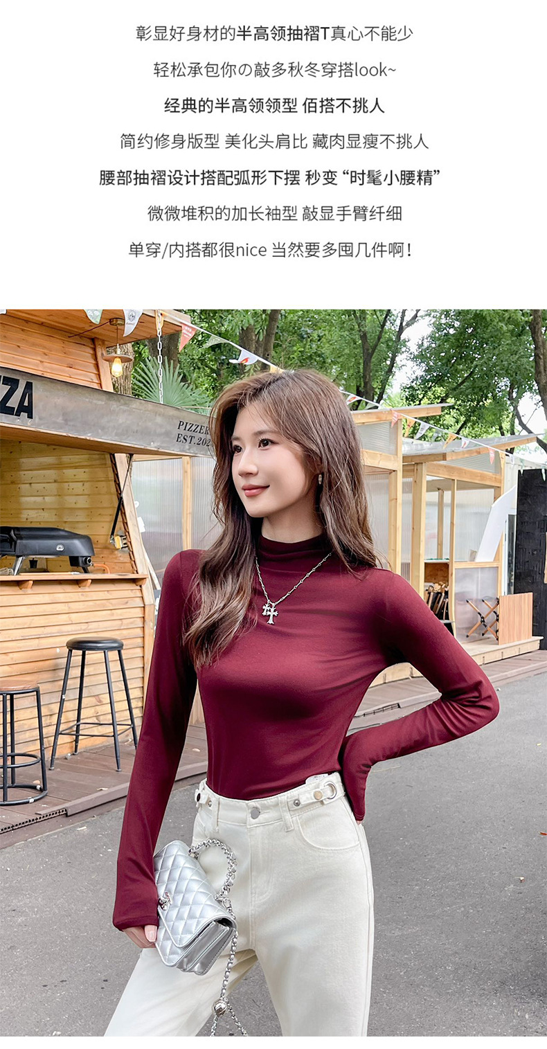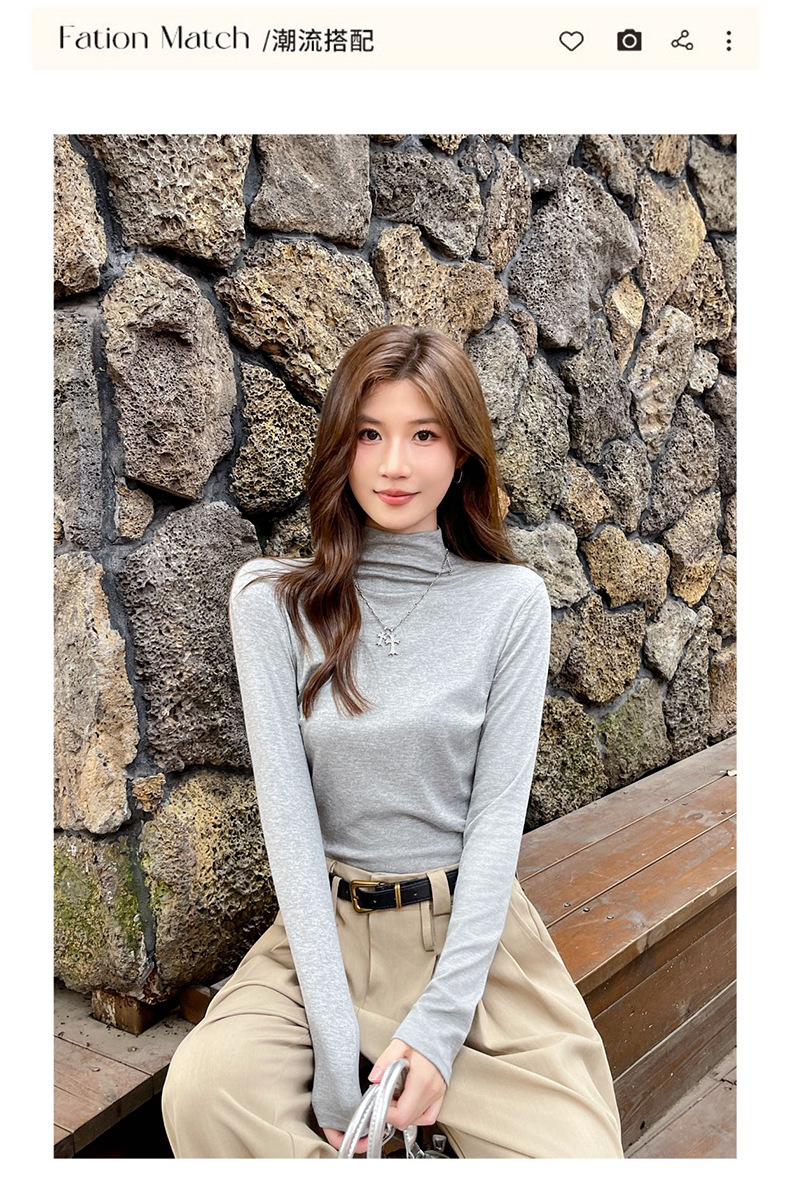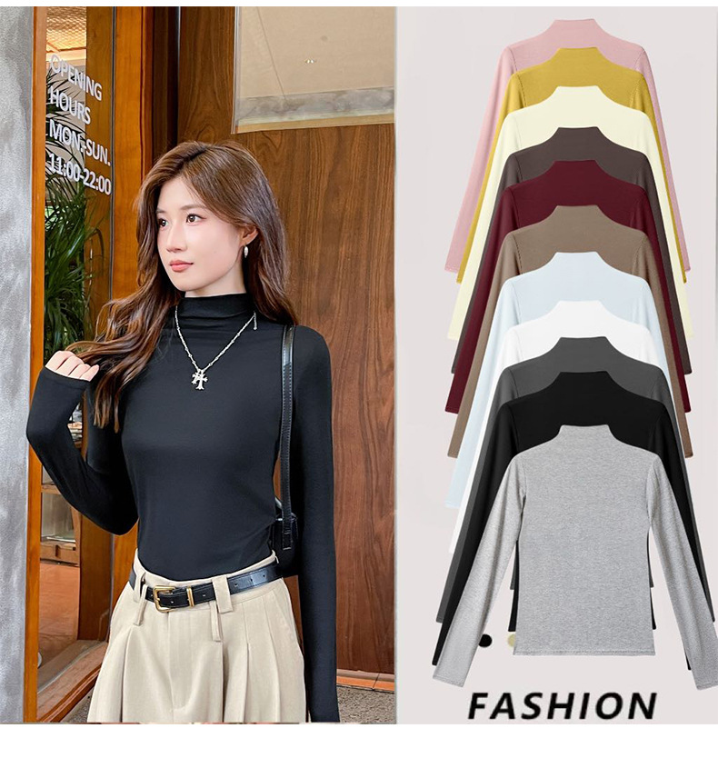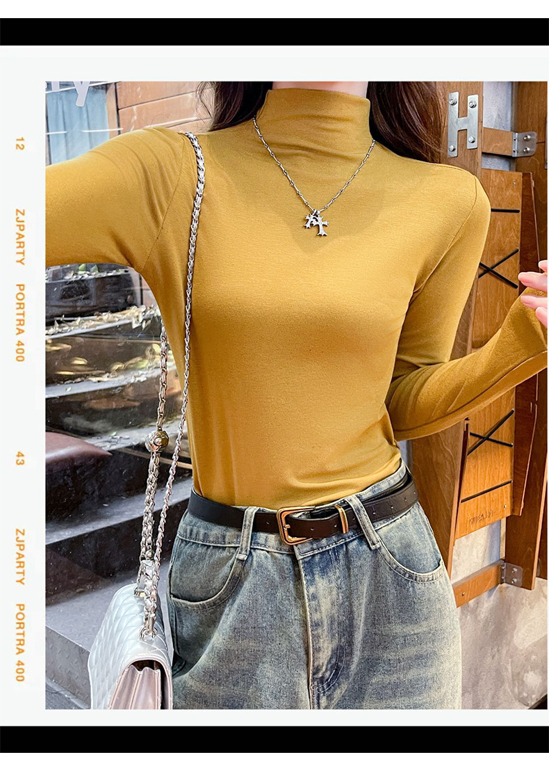 莫代尔半高领打底衫女秋2025新款高级感纯色内搭显瘦长袖t恤上衣