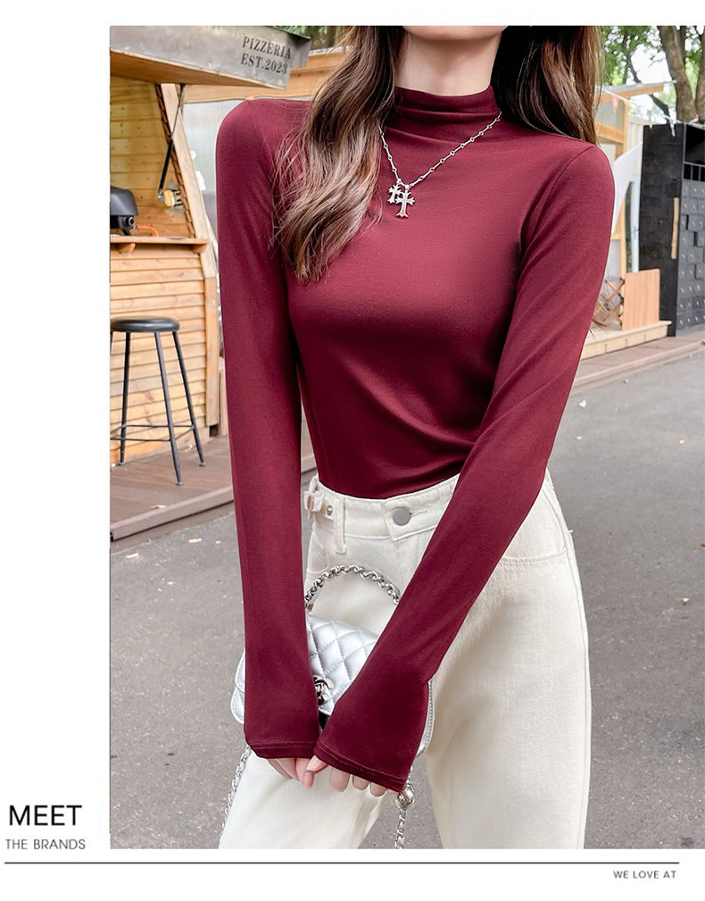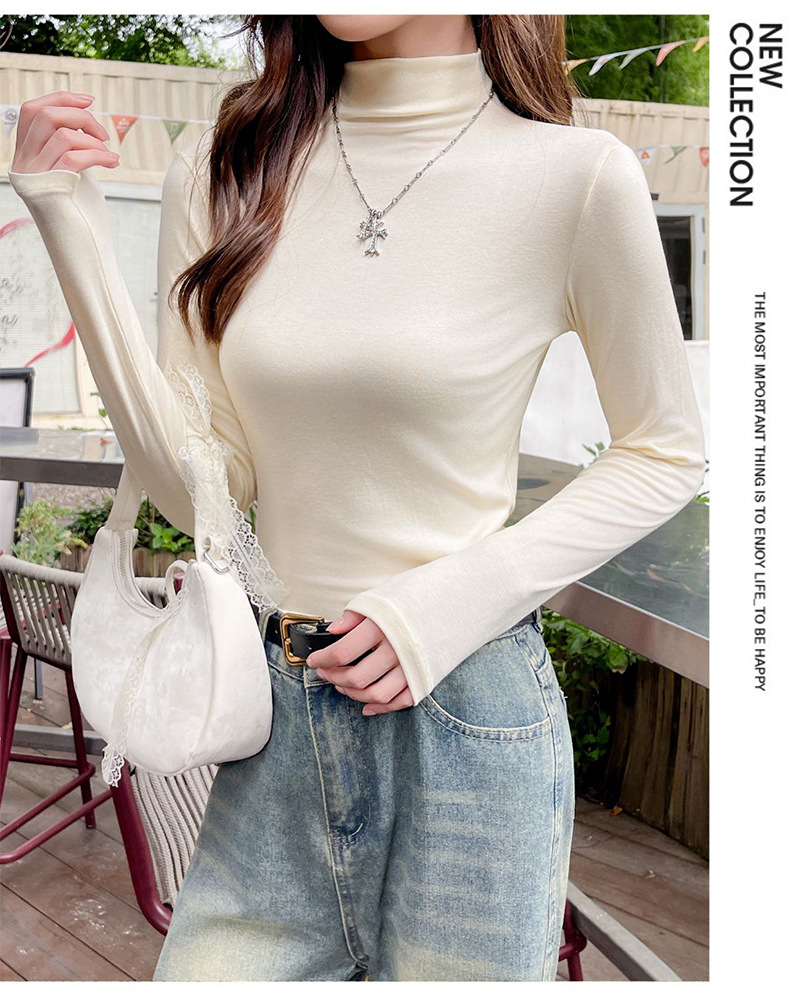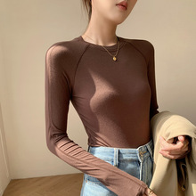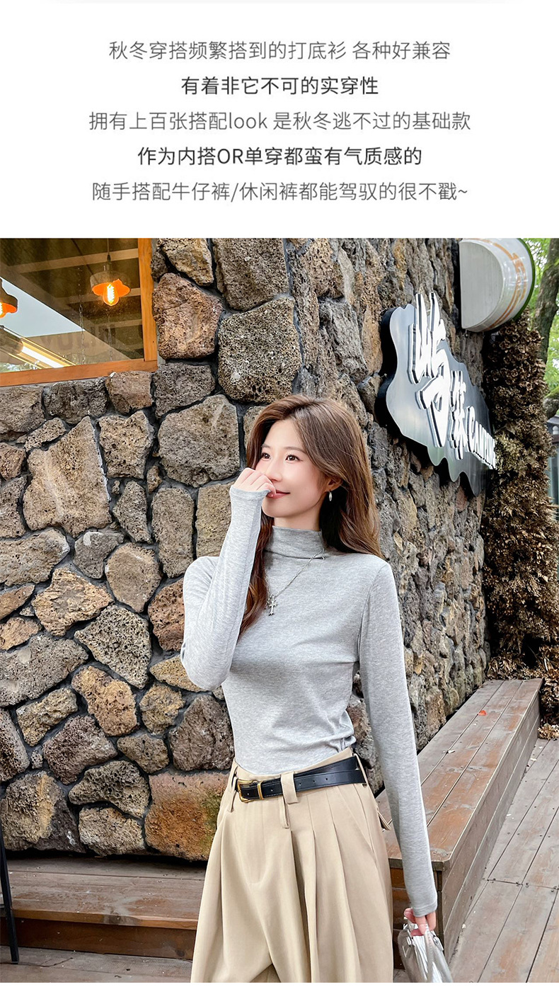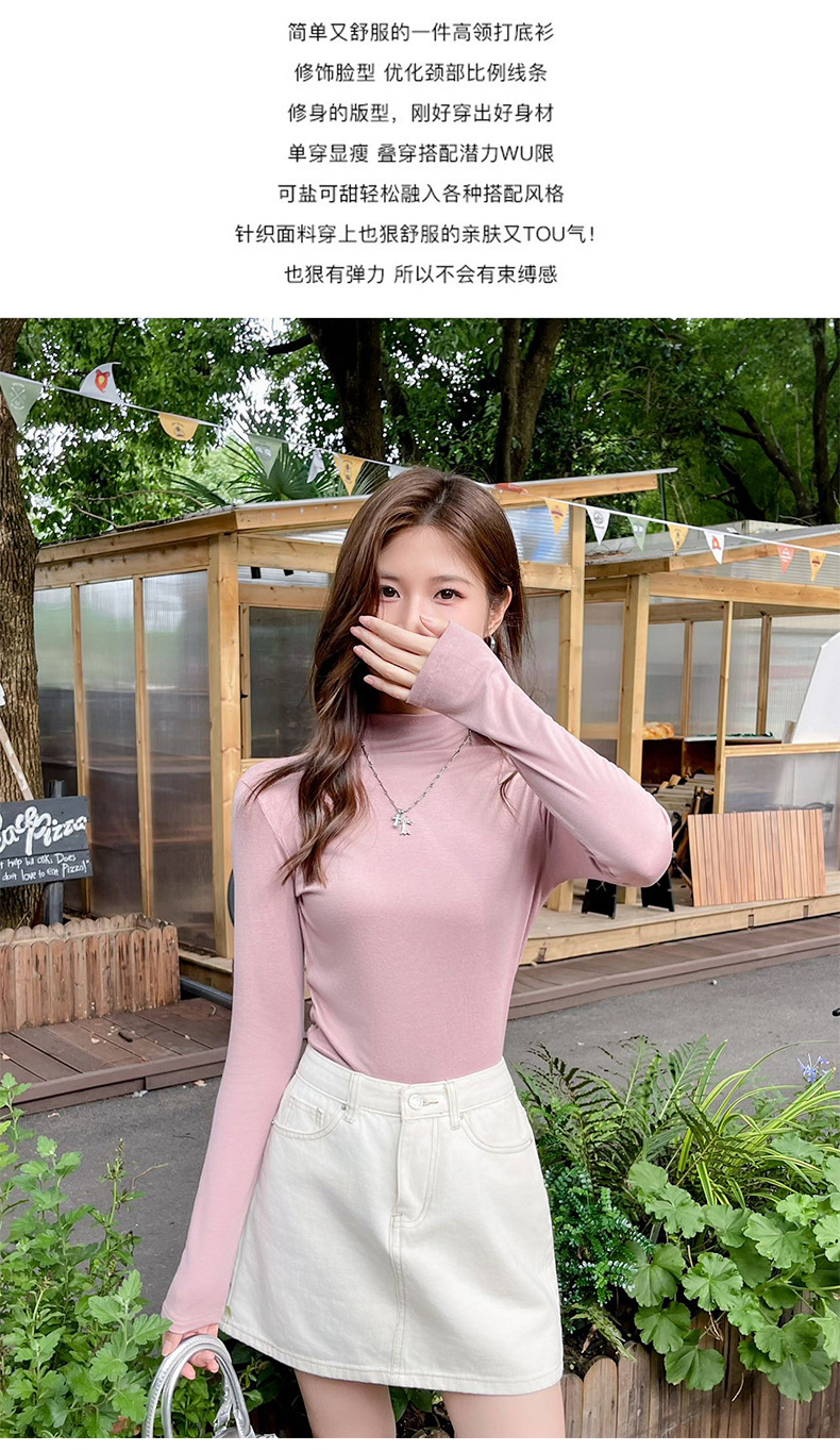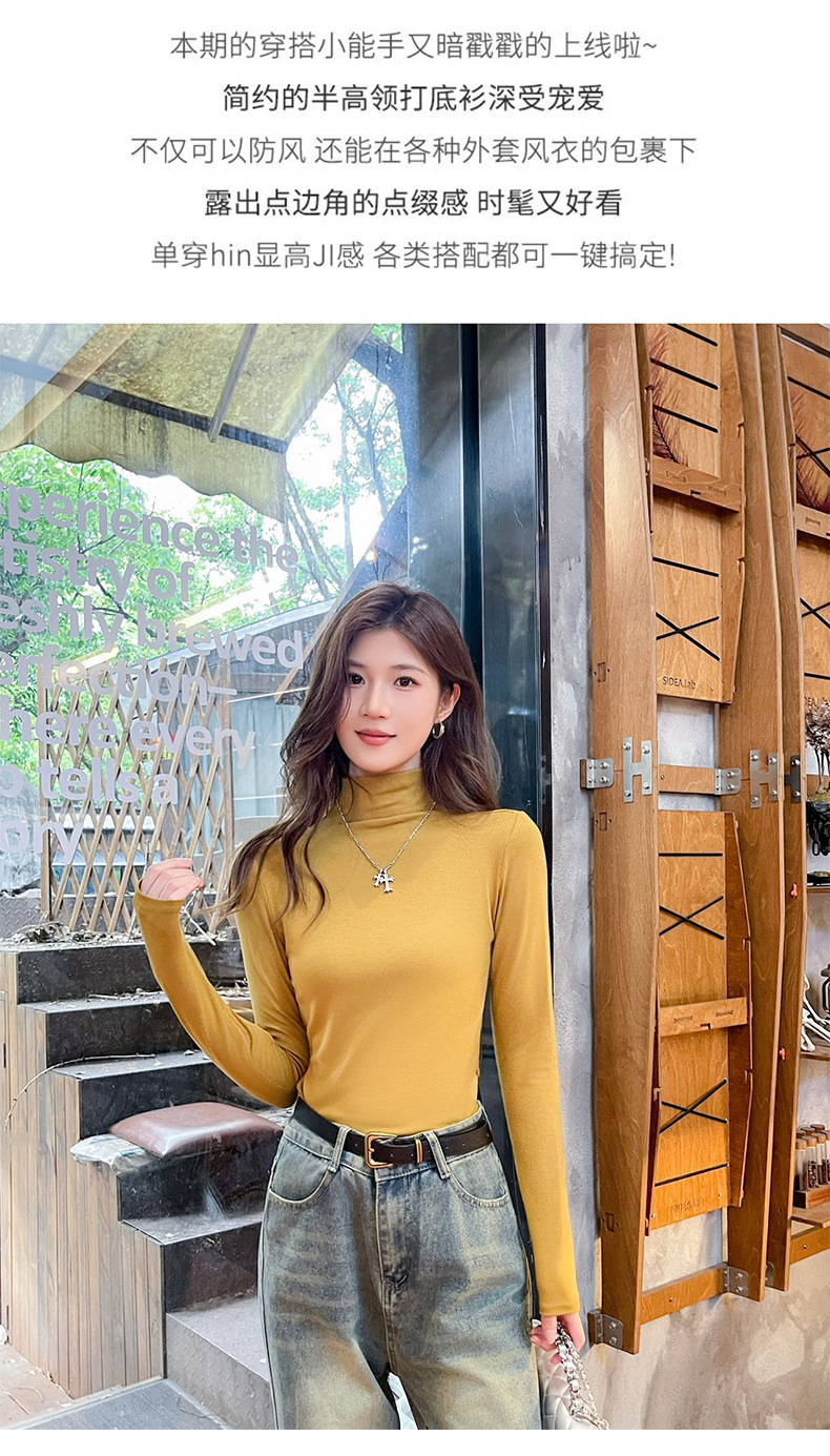莫代尔半高领打底衫女秋2025新款高级感纯色内搭显瘦长袖t恤上衣
