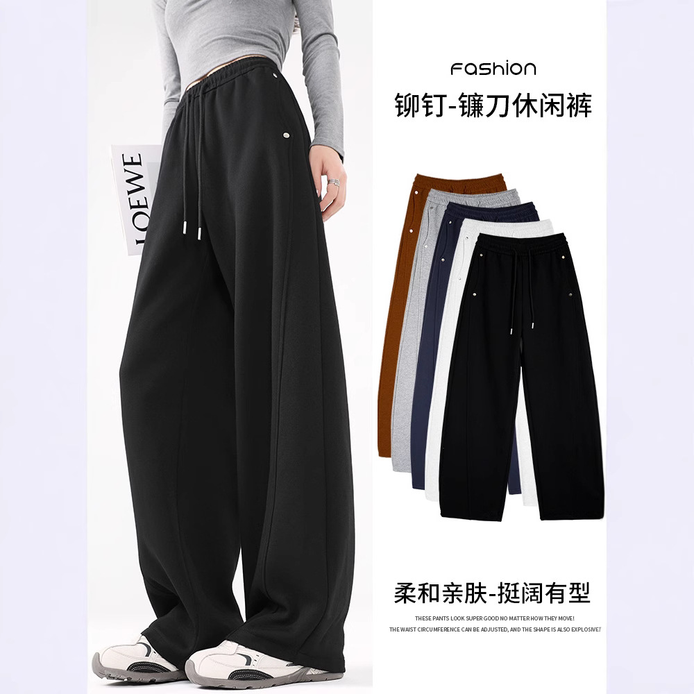 アメリカ式高腰運動ズボン女性春2025新型アリ腰衛ズボンゆるい桐広脚カジュアル長ズボン