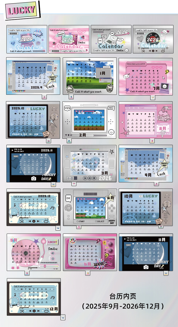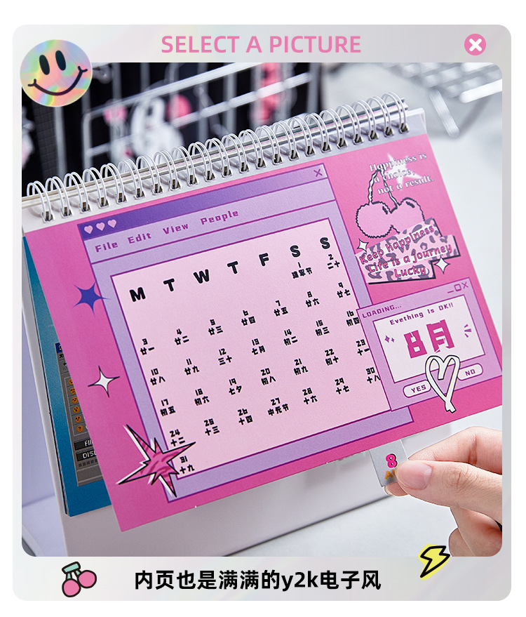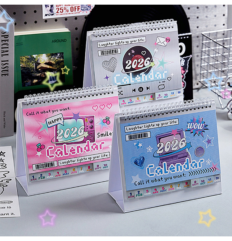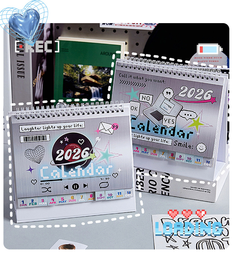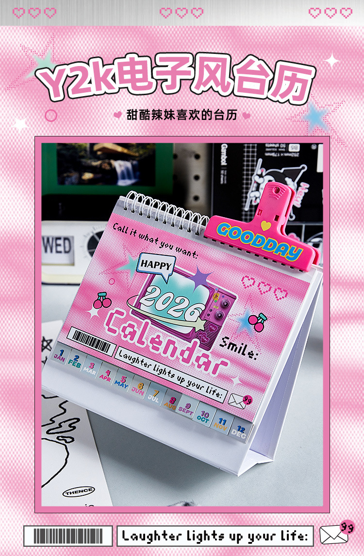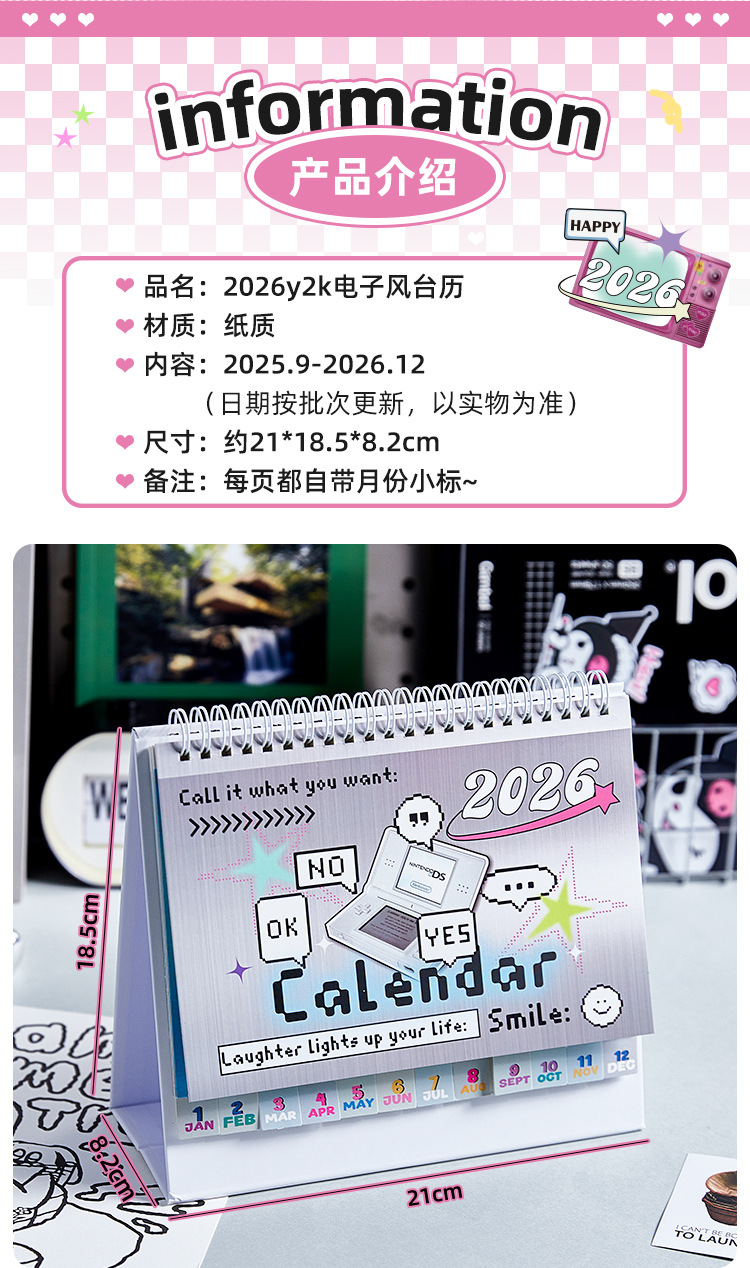 2026年创意复古元y2k电子风台历桌面摆件记事本学生办公室日历本