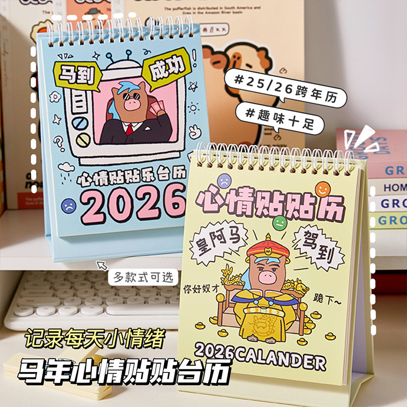 马到成功2026年新款台历桌面办公室摆件创意趣味心情贴贴乐跨年历