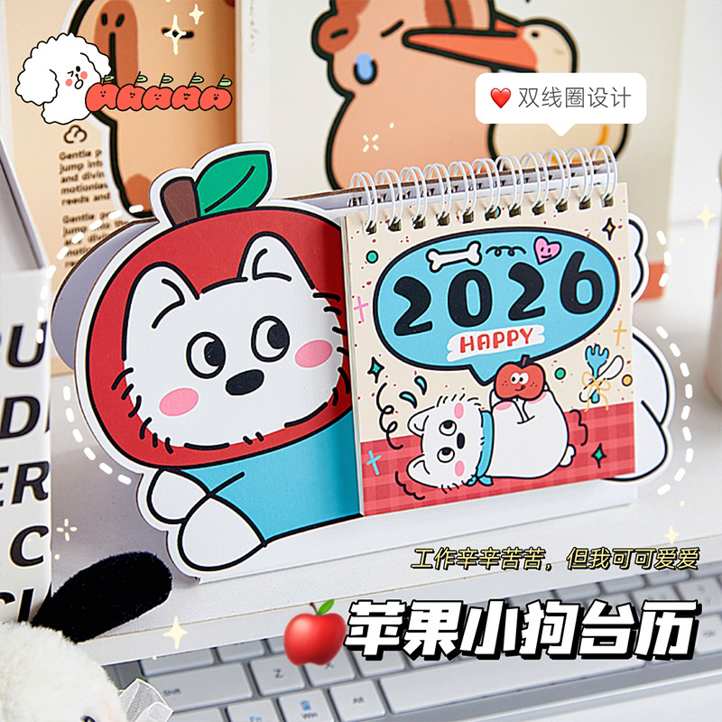 2026苹果小猫计划台历可爱卡通日历实用便携记事简约桌面小摆件