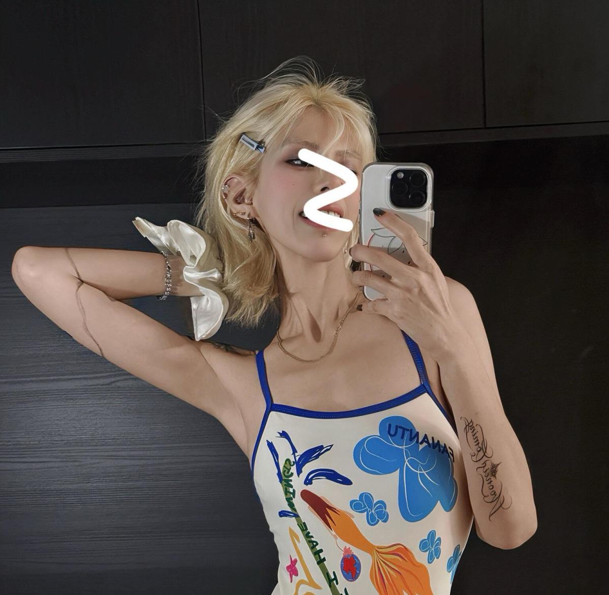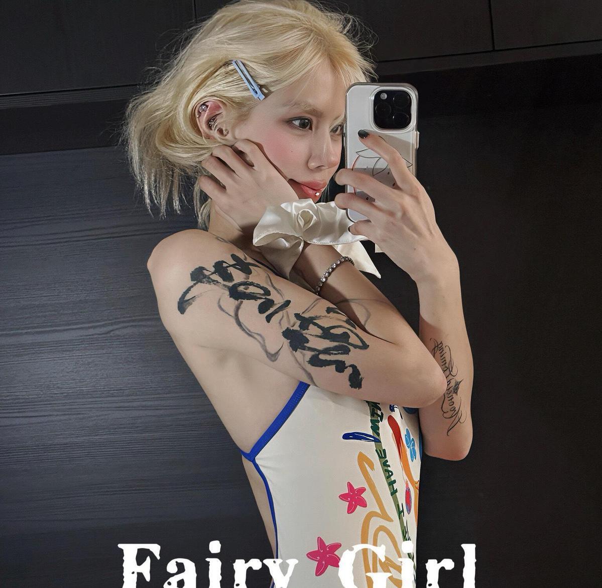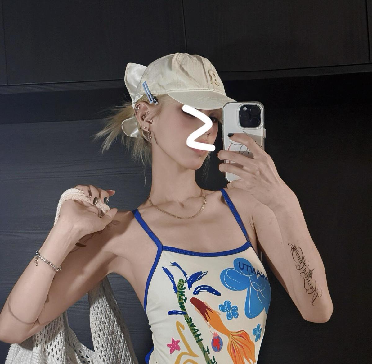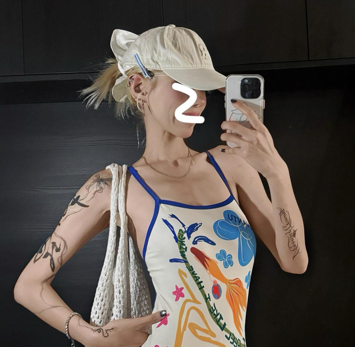 【童话镇】竞速游泳衣女生彩绘连体三角游泳馆专业训练泳衣运动风