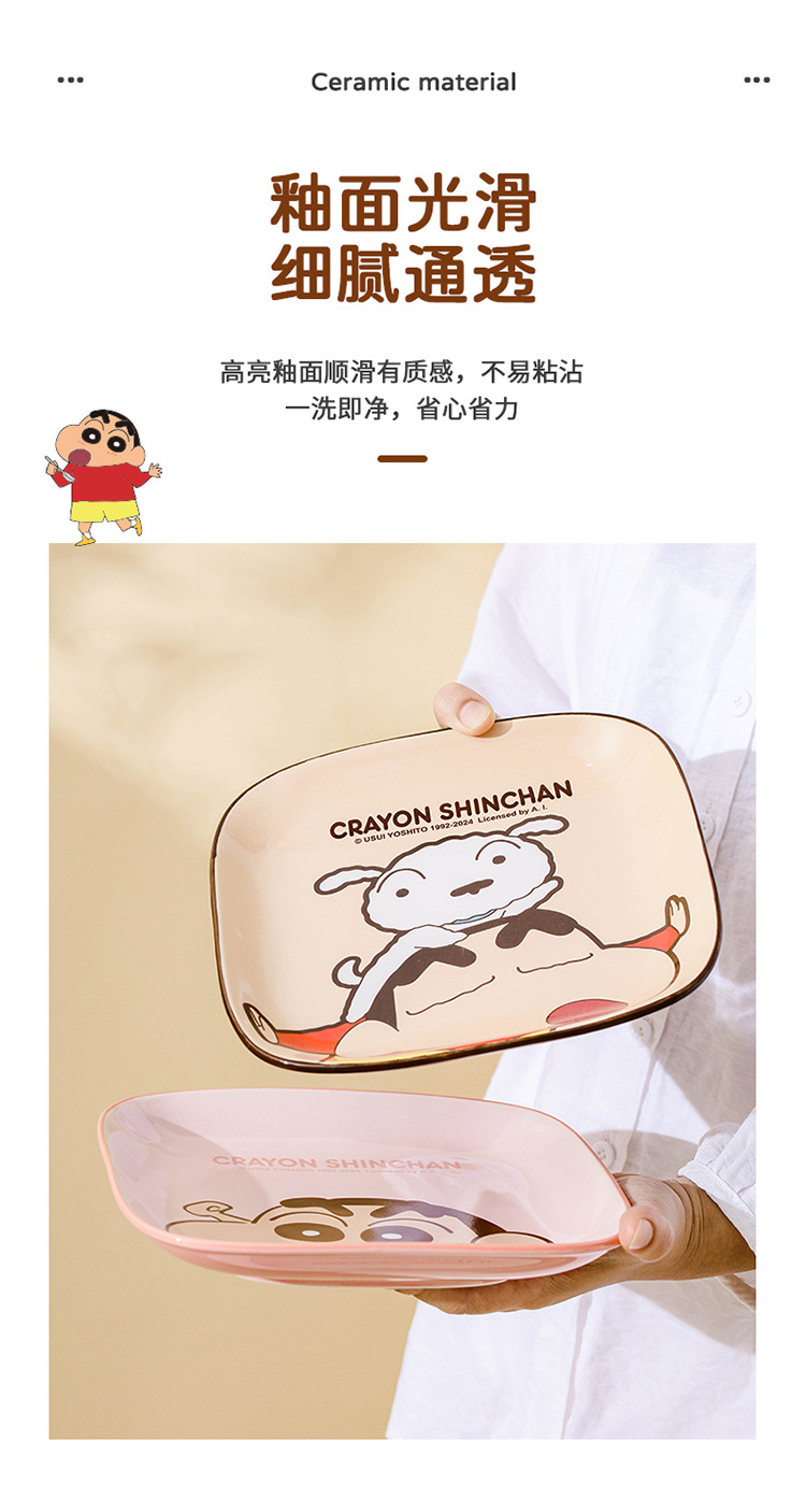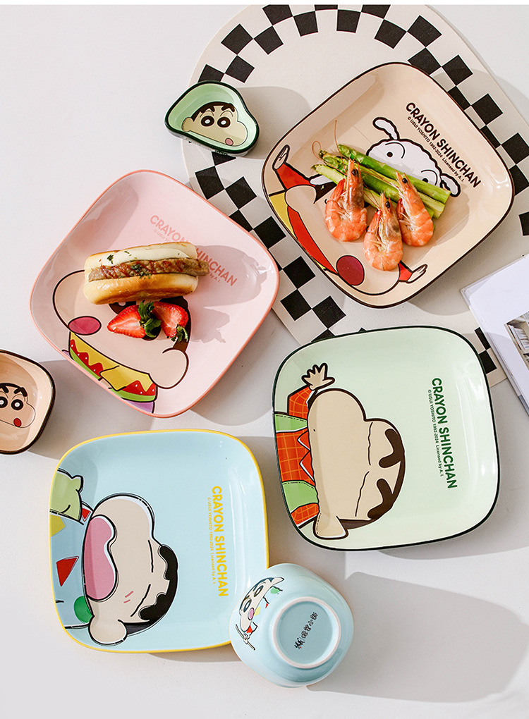 蜡笔小新碗碟盘套装家用陶瓷餐具卡通方形碗盘筷高颜值米饭碗餐盘