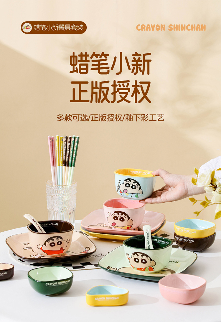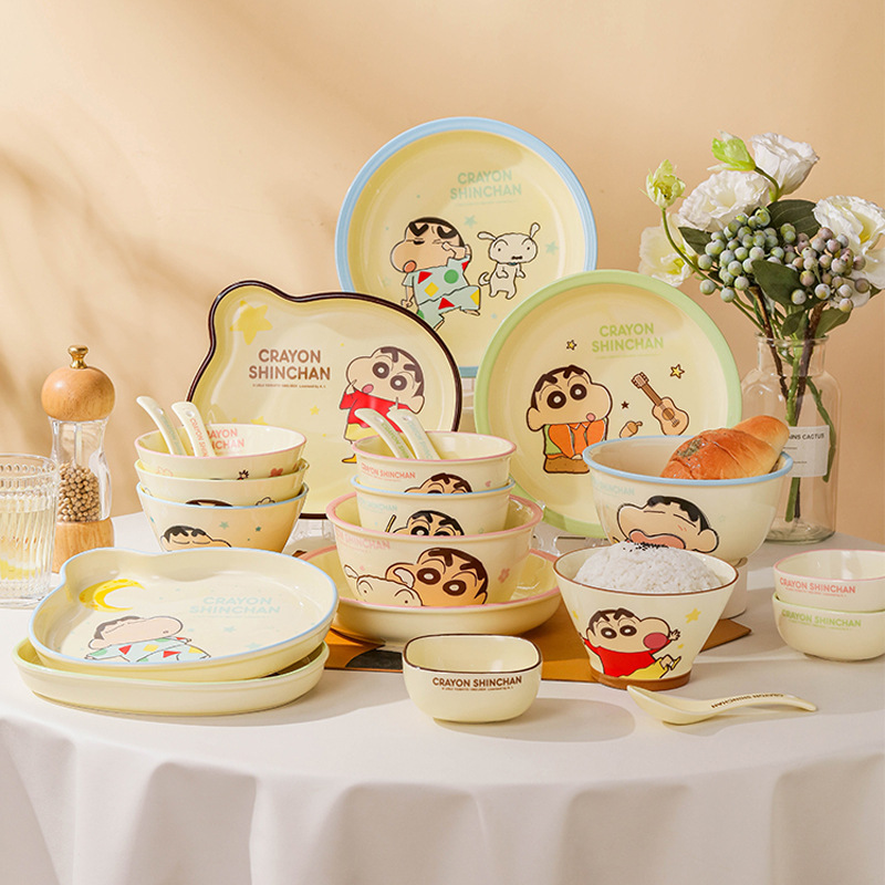 クレヨンしんちゃん漫画セラミックボウル高価値セラミック食器子供用家庭用丼ディナープレートスプーンかわいいスープボウル