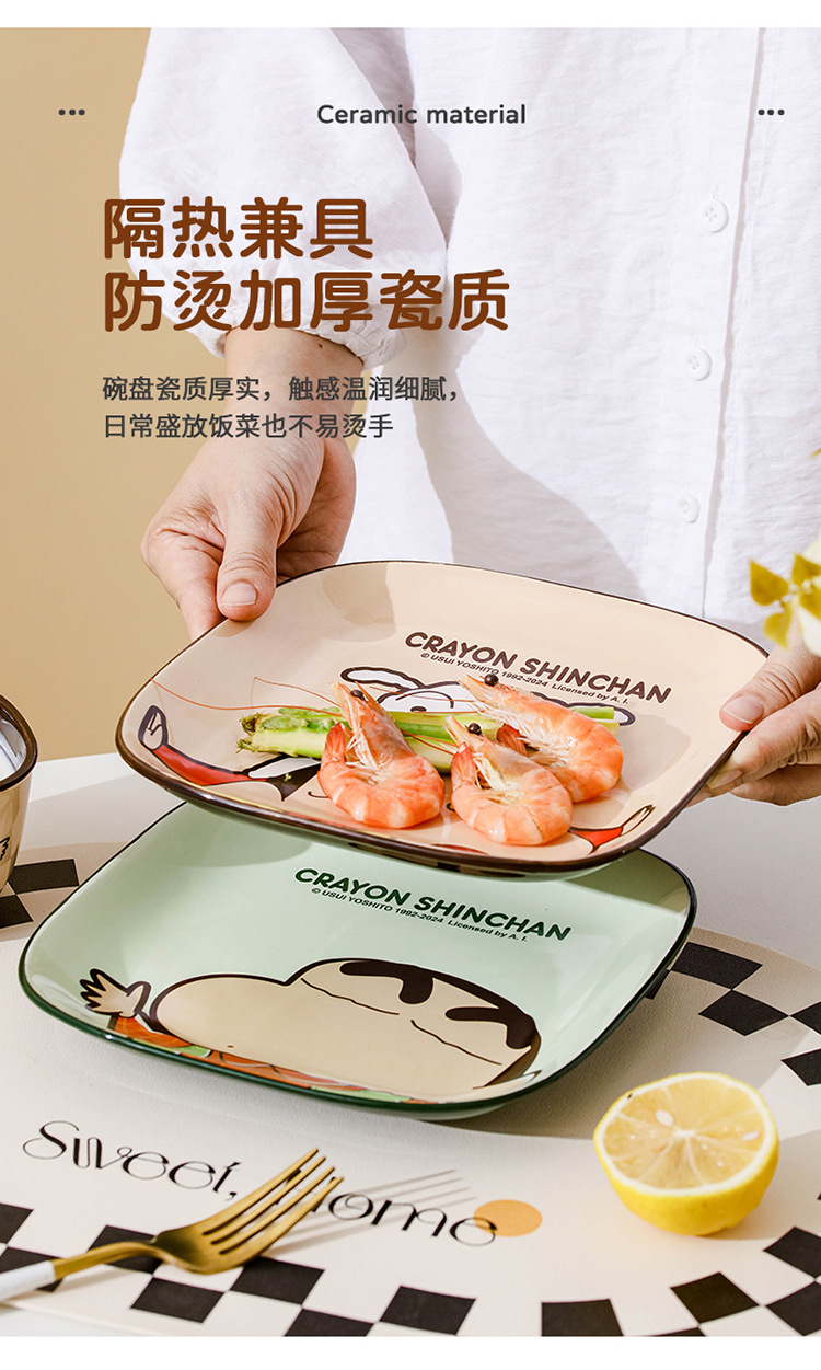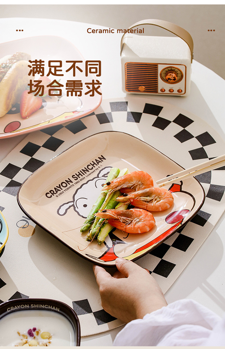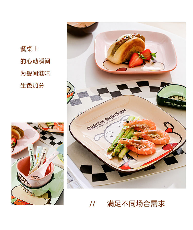 蜡笔小新陶瓷碗家用方形吃饭碗高颜值碗碟盘儿童餐具筷子勺子汤碗