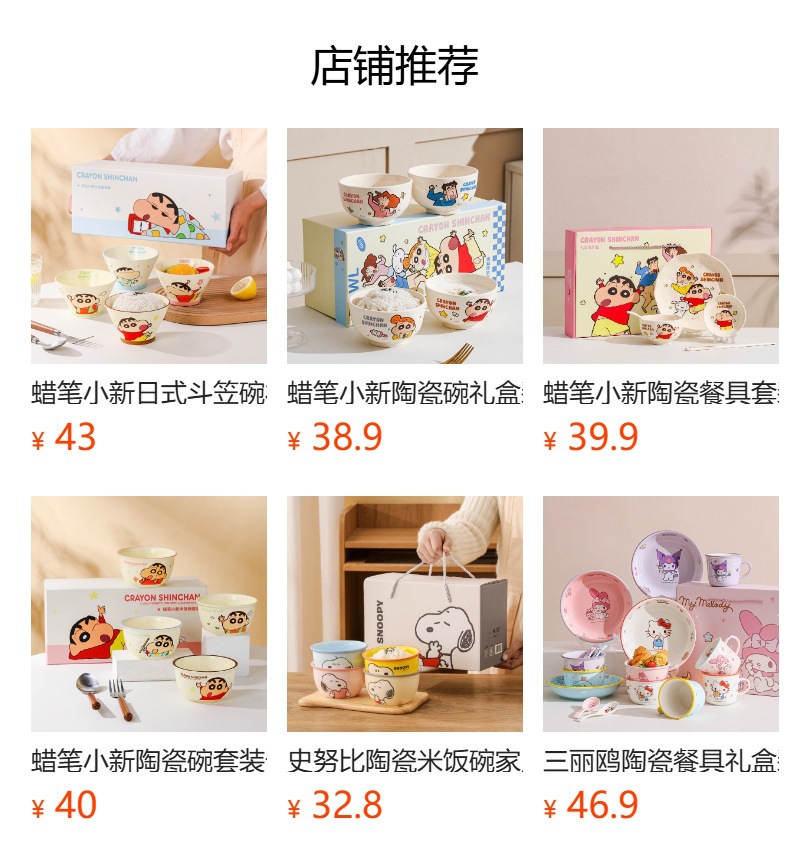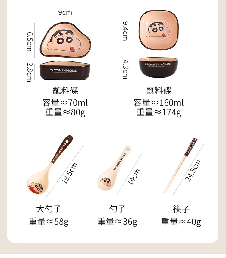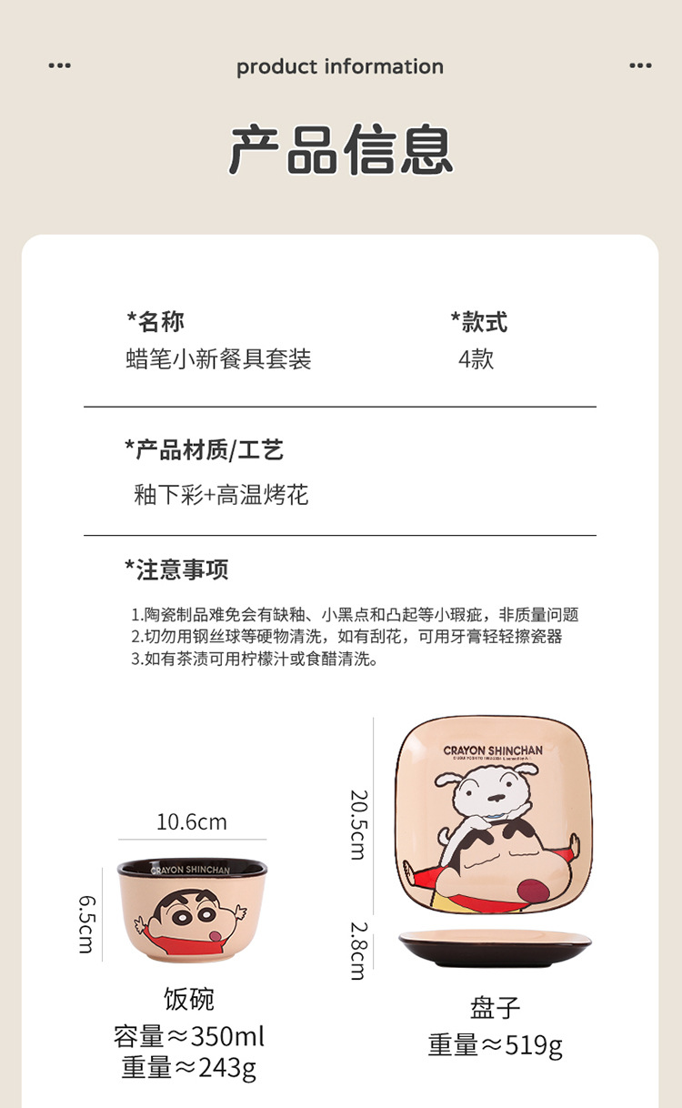 蜡笔小新陶瓷碗家用高颜值碗碟盘套装可爱异型盘日式吃饭碗斗笠碗