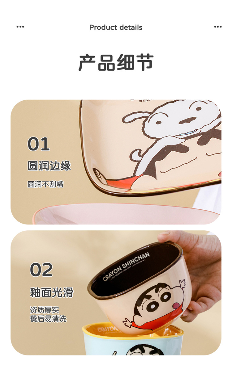 クレヨンしんちゃん陶器食器正方形丼高価値食器セット家庭用漫画子供用食器ボウルとスプーン