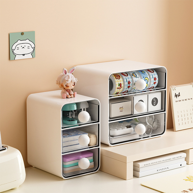 オフィスのデスクトップの収納ケースの透明な小さい引き出し式の収納棚の学生の机の上の文房具の雑物は物を整理して貯蔵します。