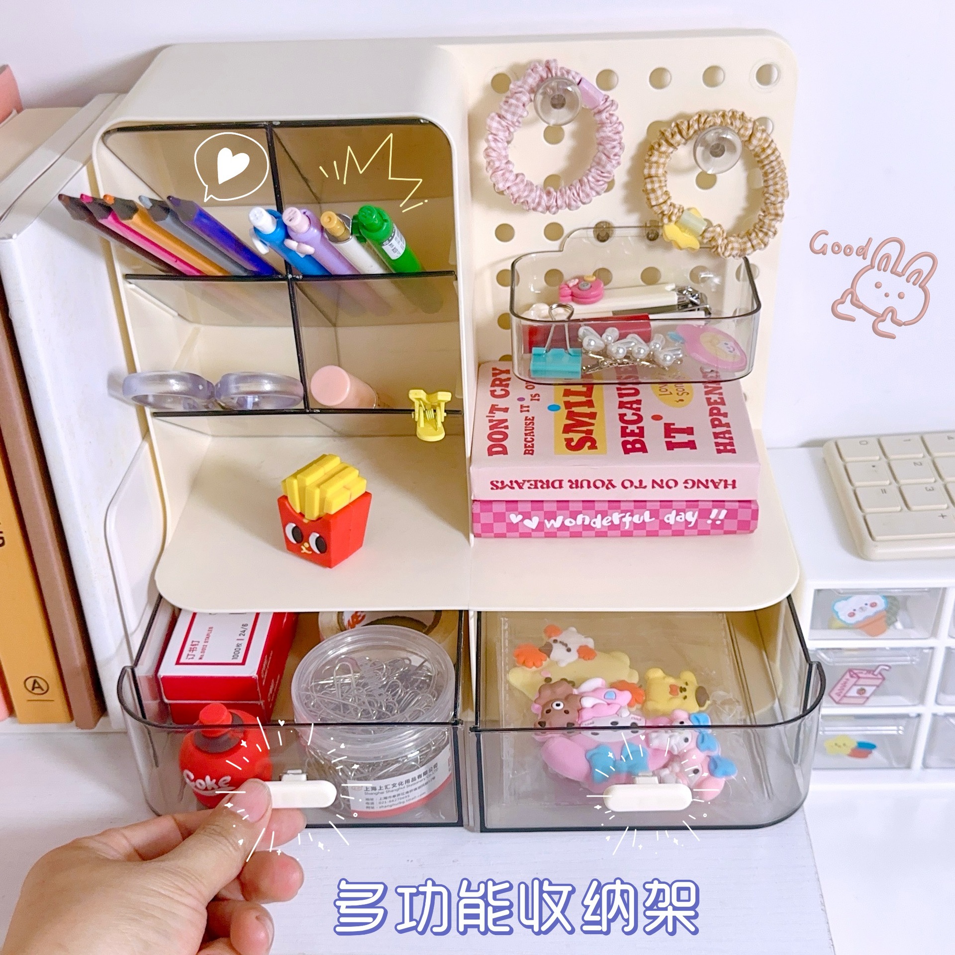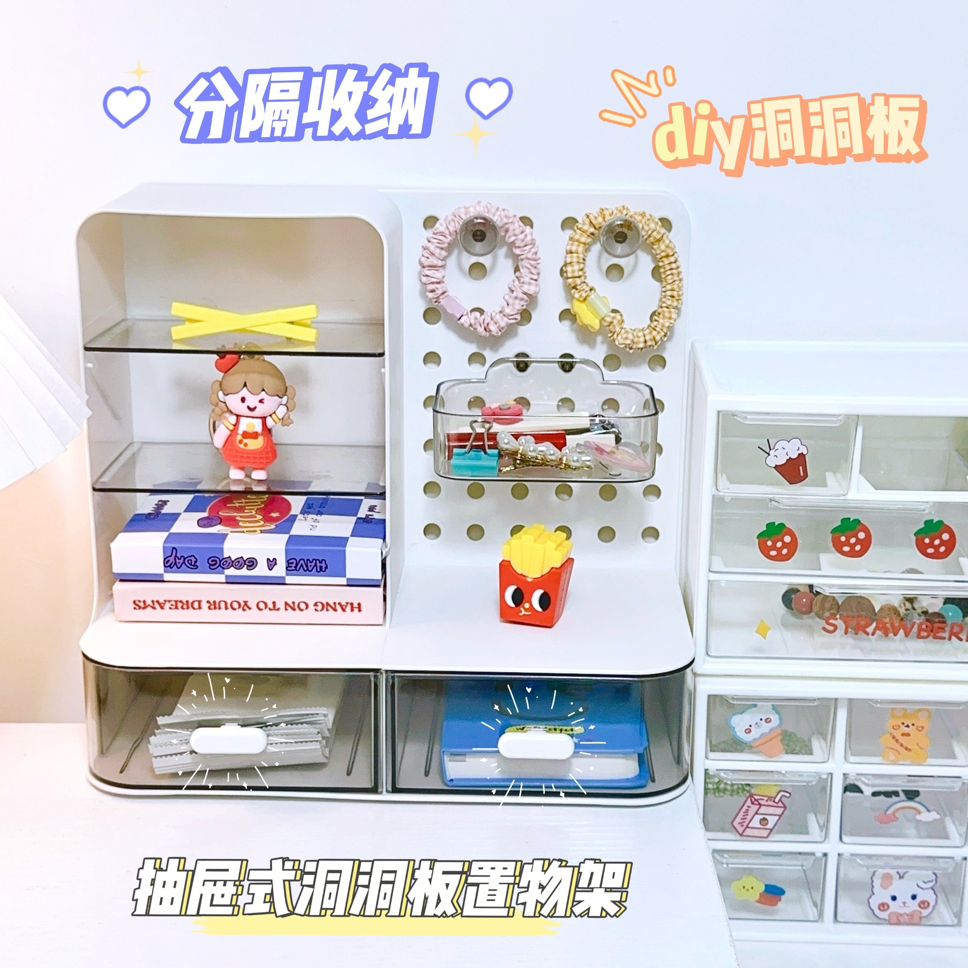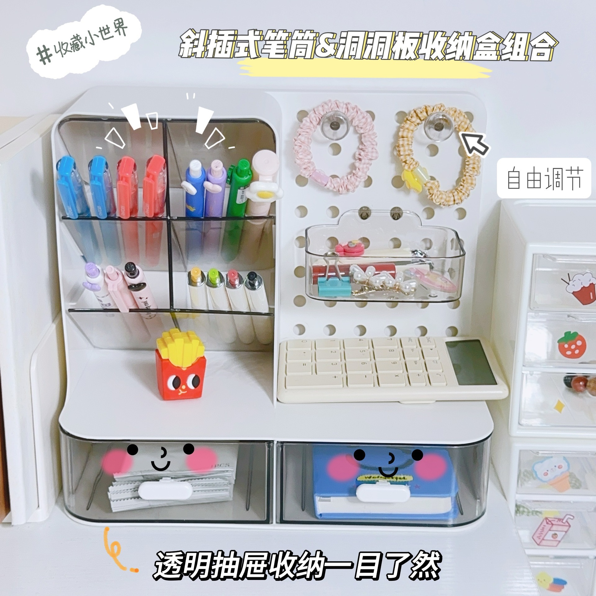 桌面洞洞板收纳盒办公室学生宿舍书桌笔筒桌上抽屉收纳盒整理盒