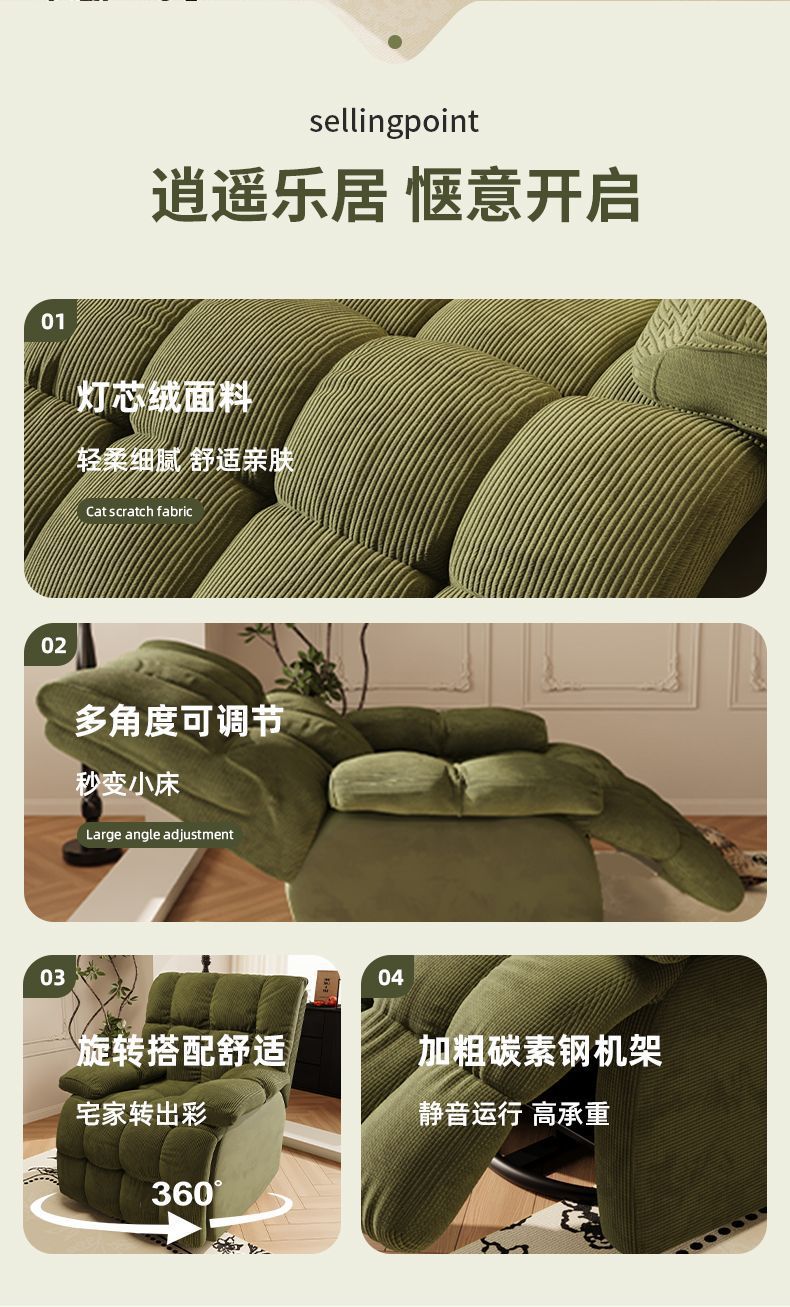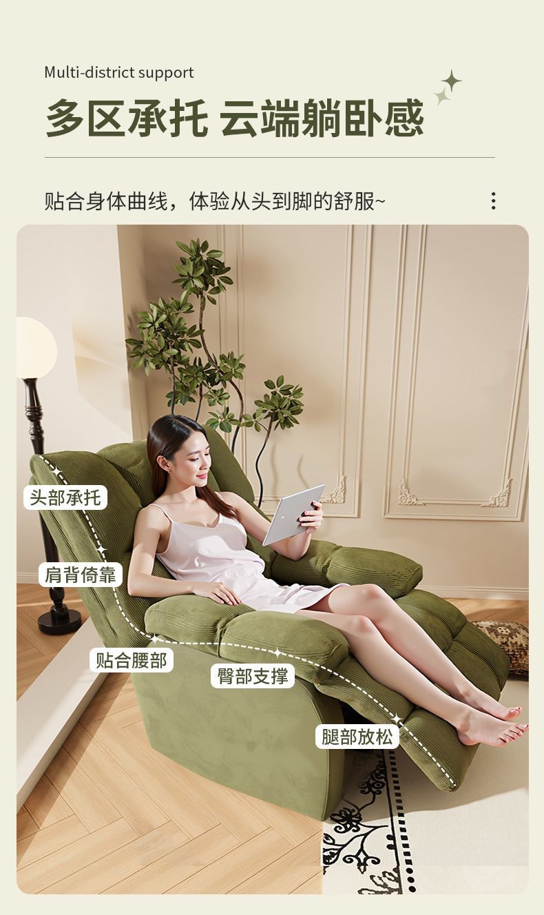 レイジーソファキャビンスペース多機能シングルファブリックソファリビングルームロッキングチェア電動クラウドライト高級ソファチェア