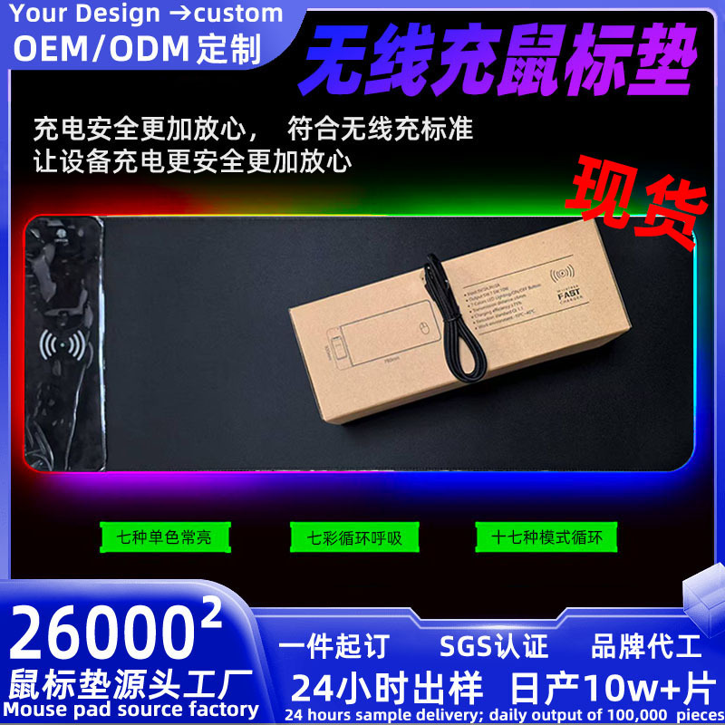 现货秒发厂家直销办公专用纯黑色无线充发光鼠标垫高级大桌垫顺滑
