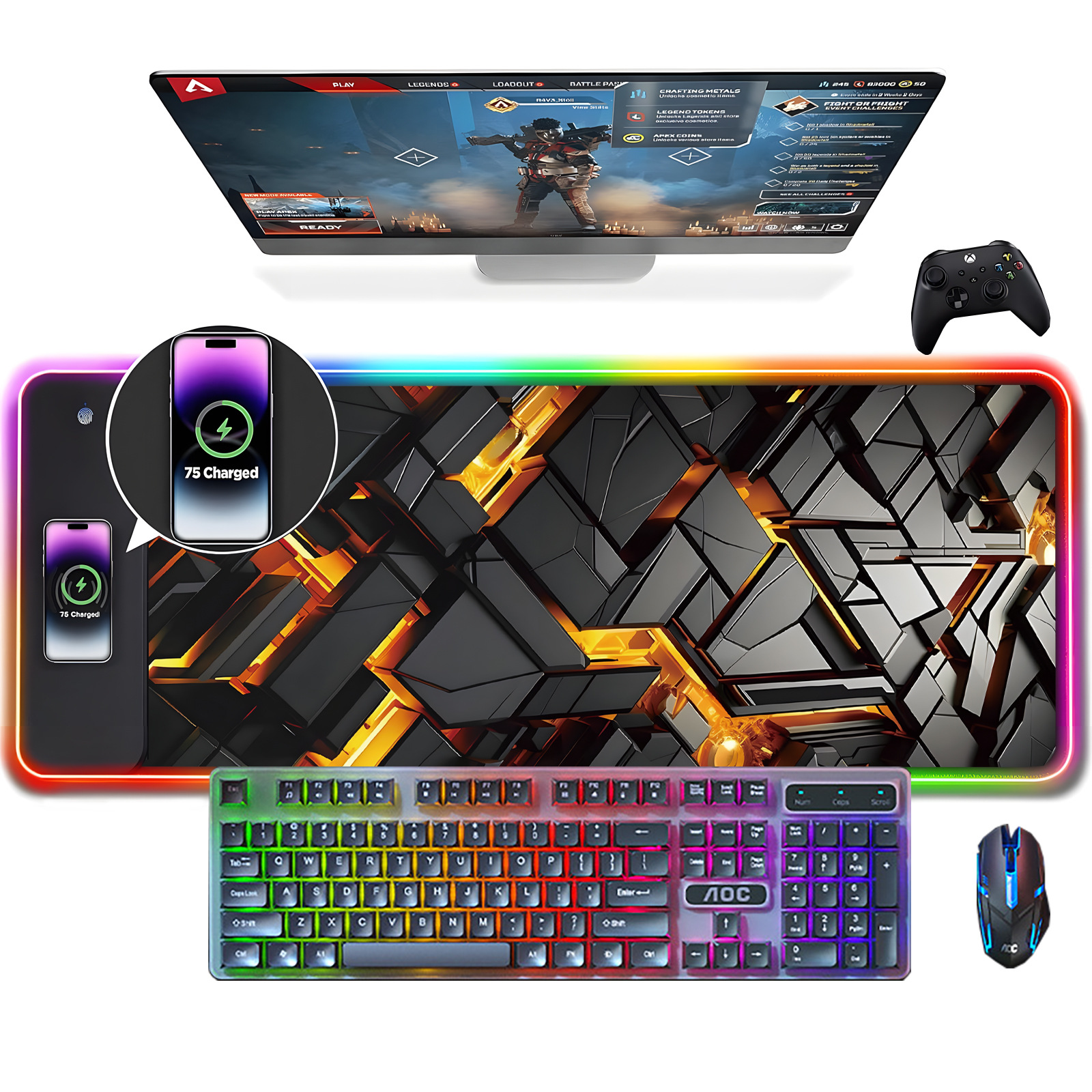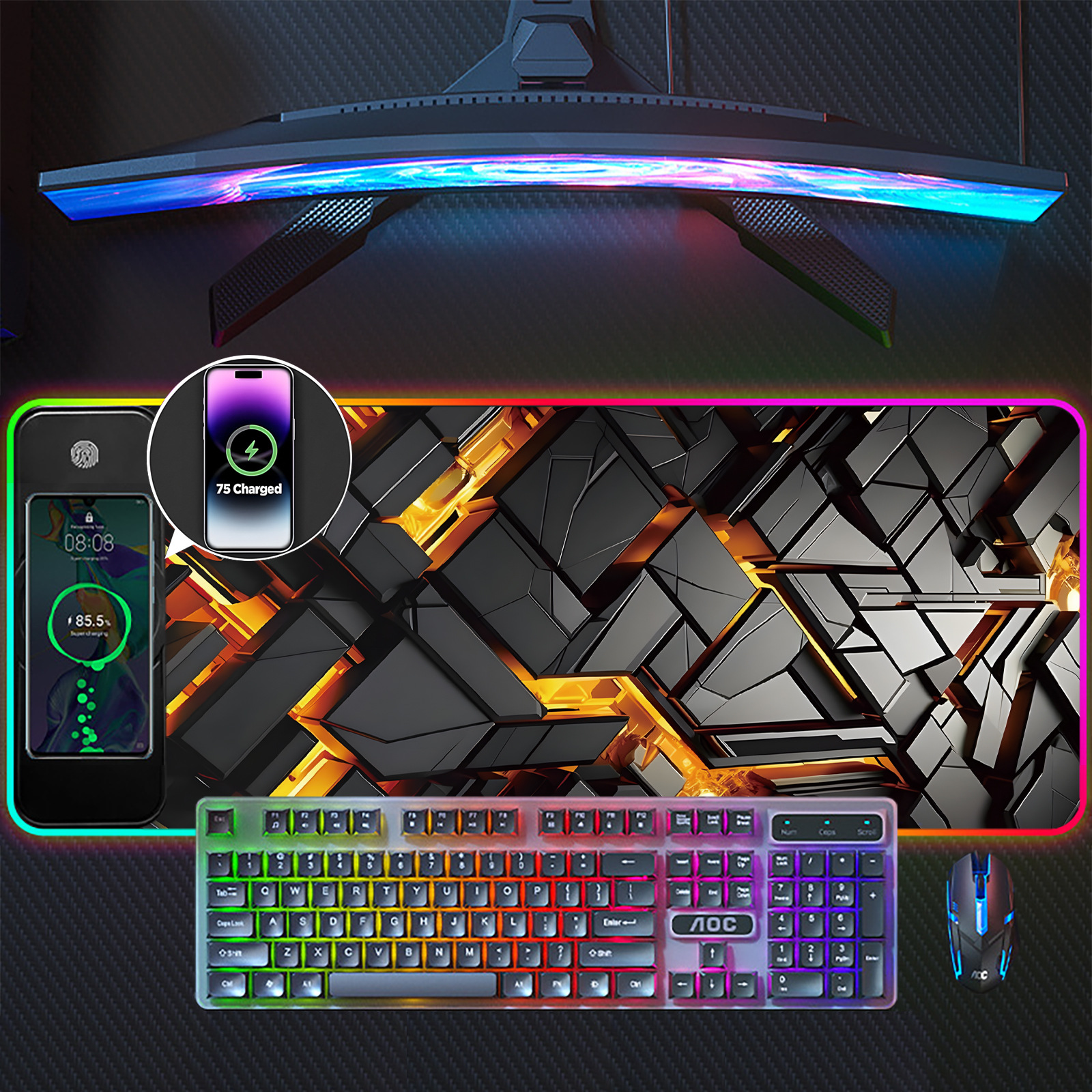 ワイヤレス充電マウスパッド電気競争ゲームRGB発光多機能15w充電カラフルな超大型キーボードロックサイドテーブルパッド