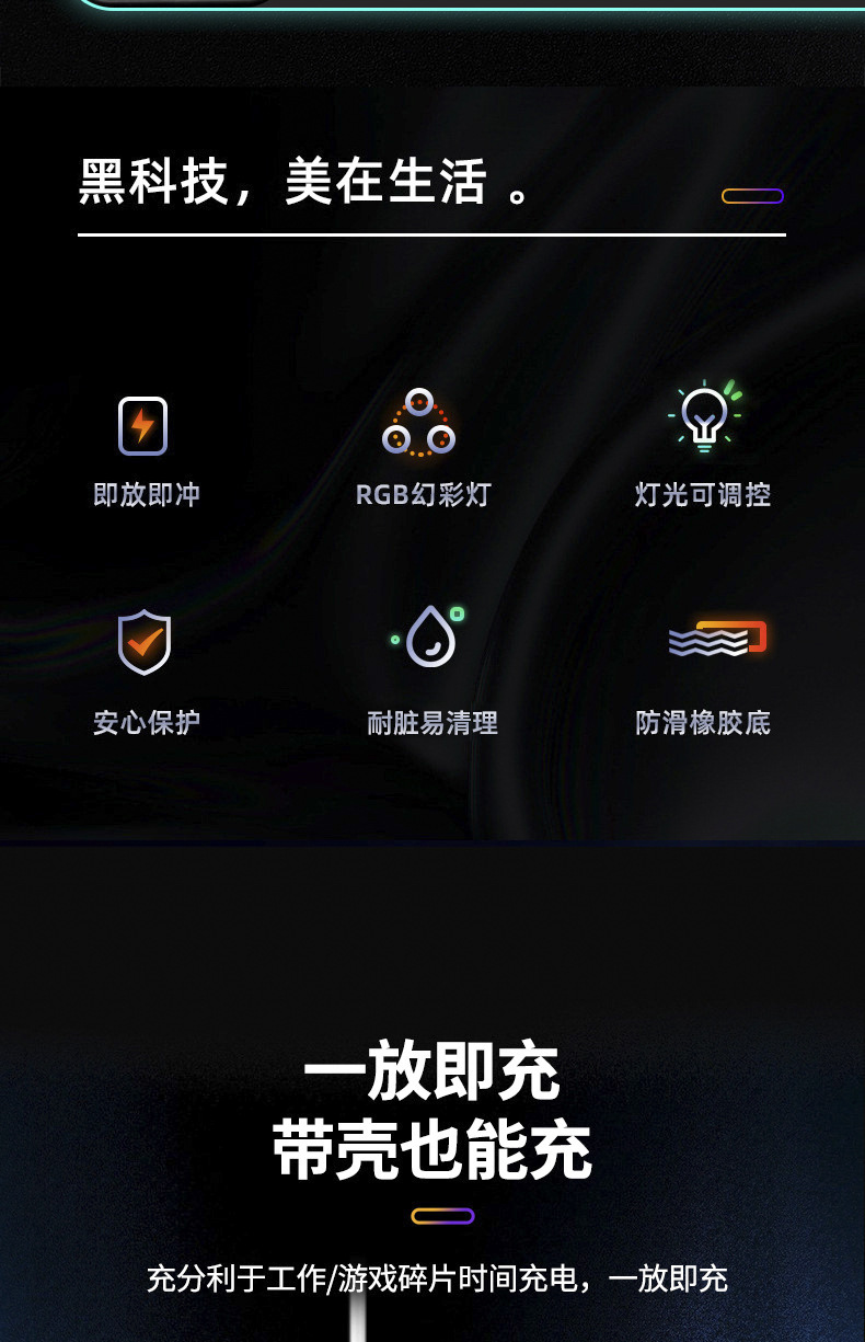 颜色 3D无线充发光垫-纯黑色