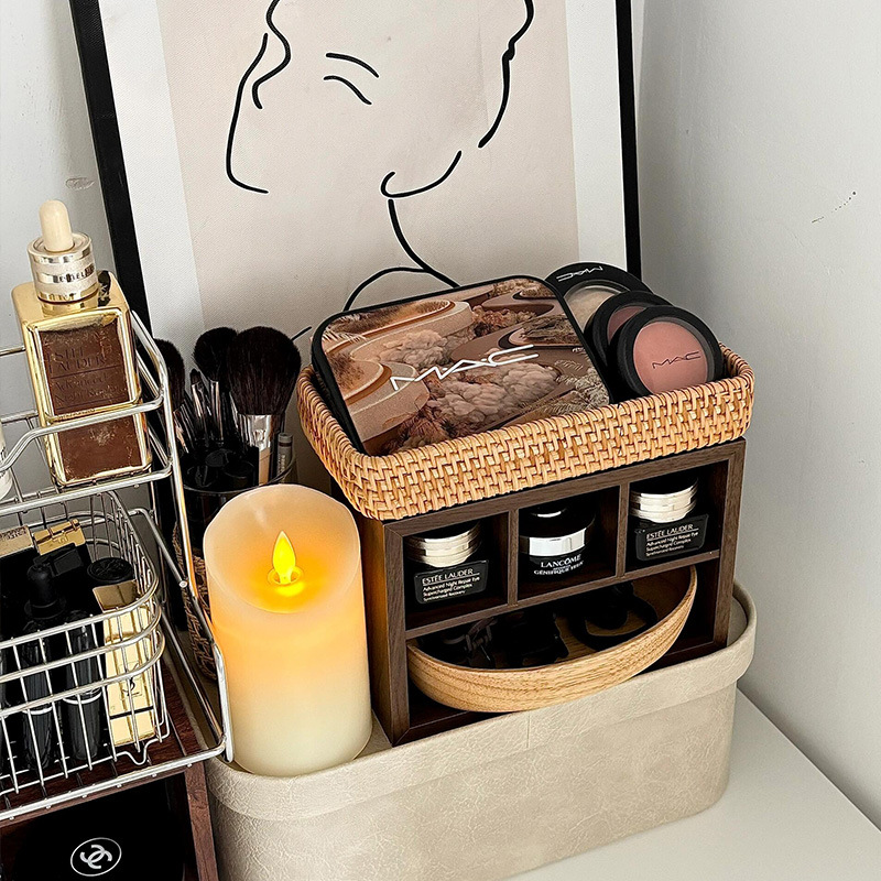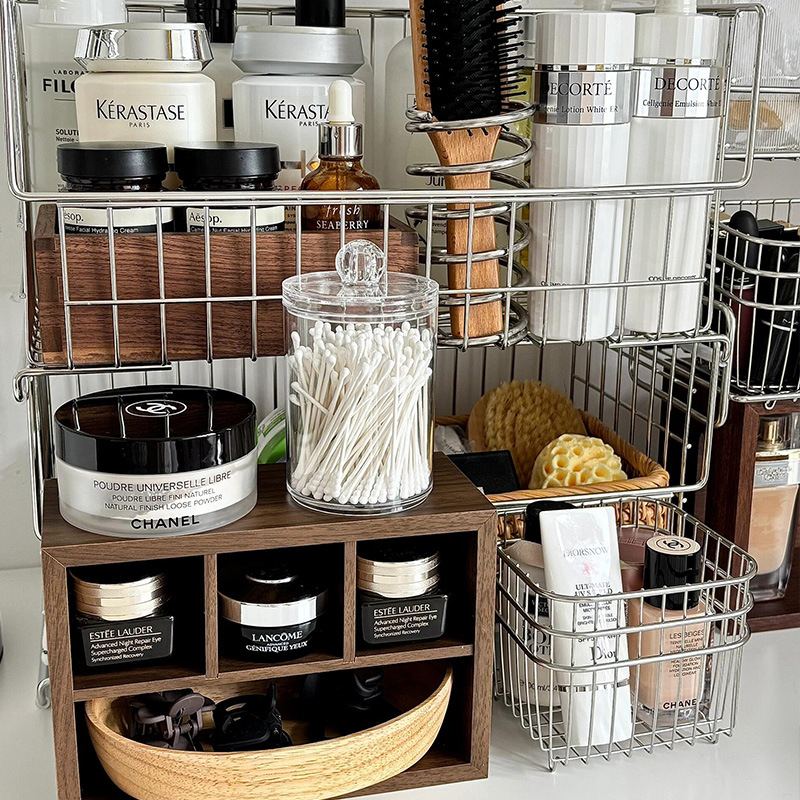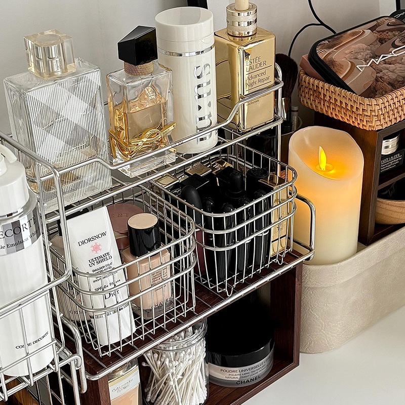 极简风不锈钢化妆品收纳架桌面ins铁艺篮置物架护肤品面膜整理架